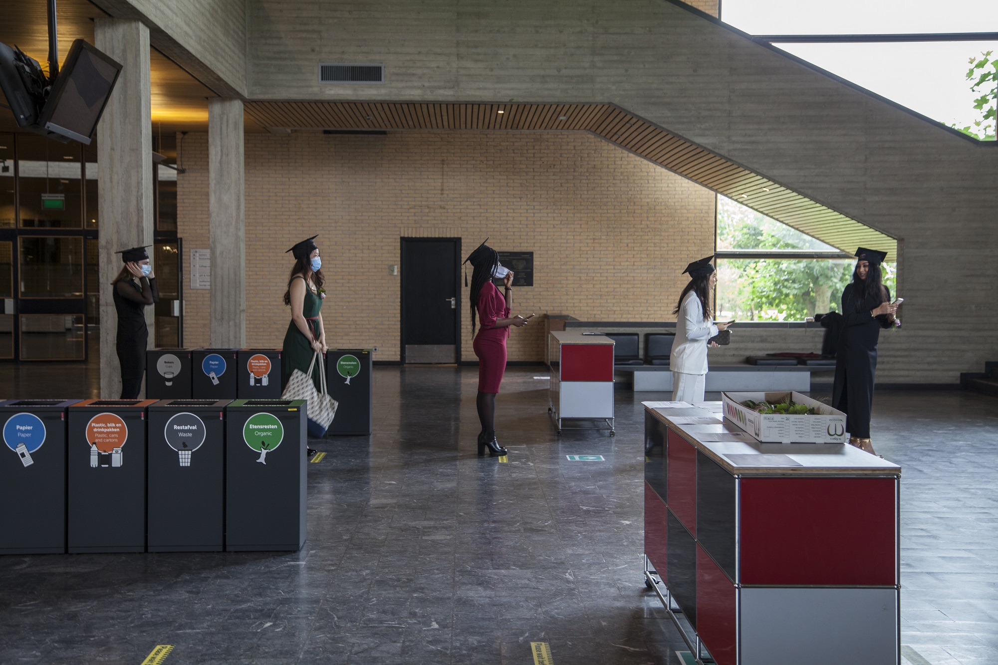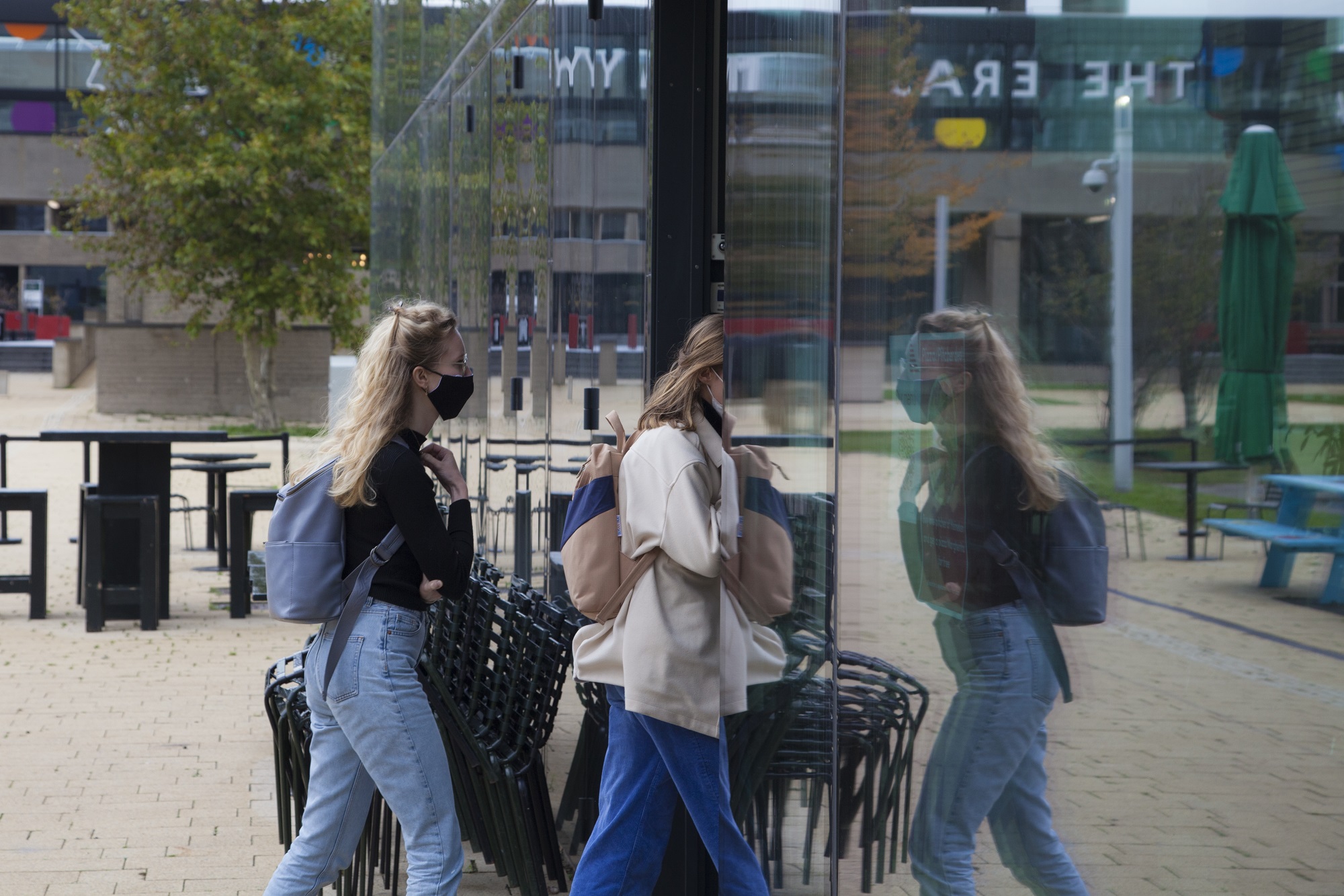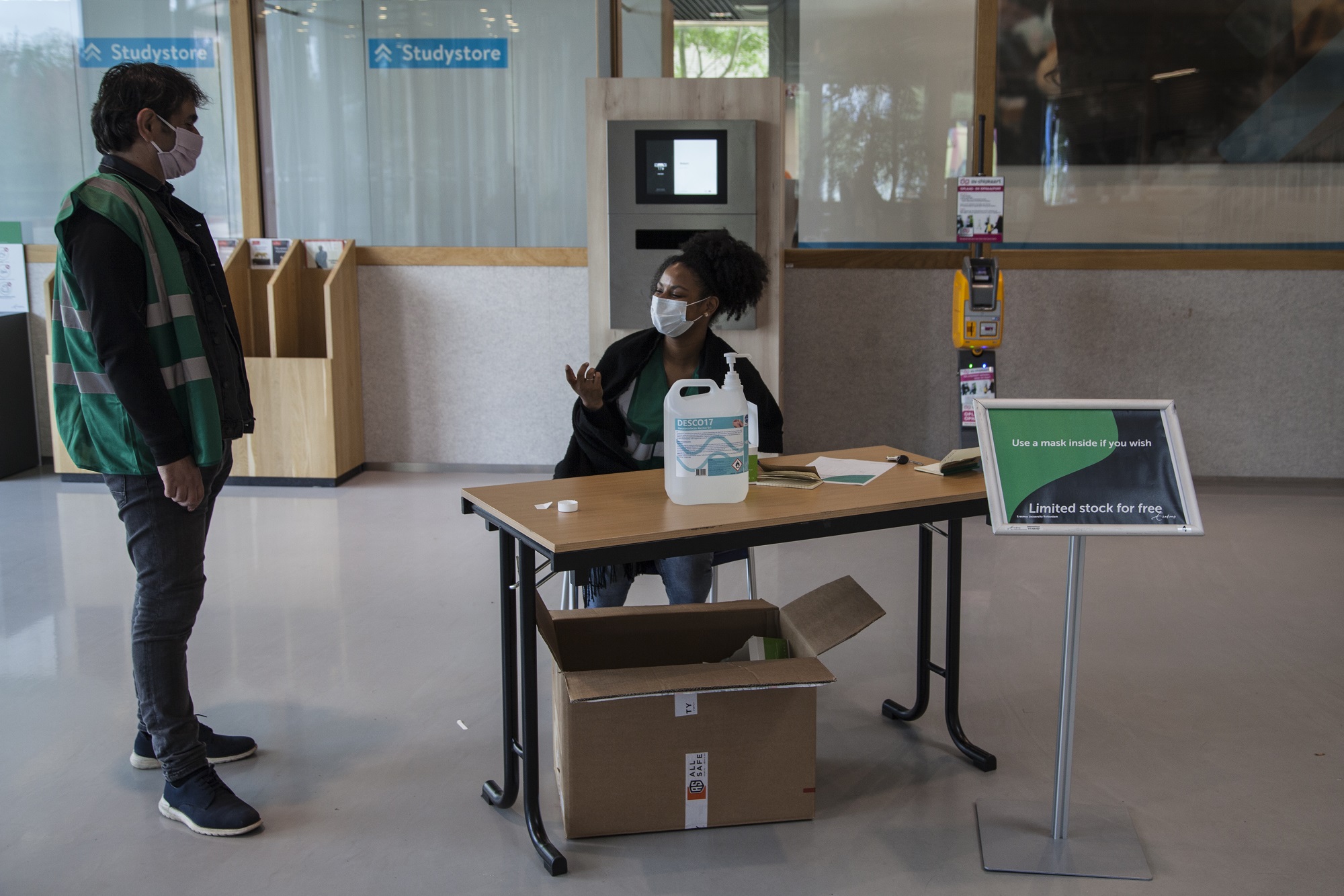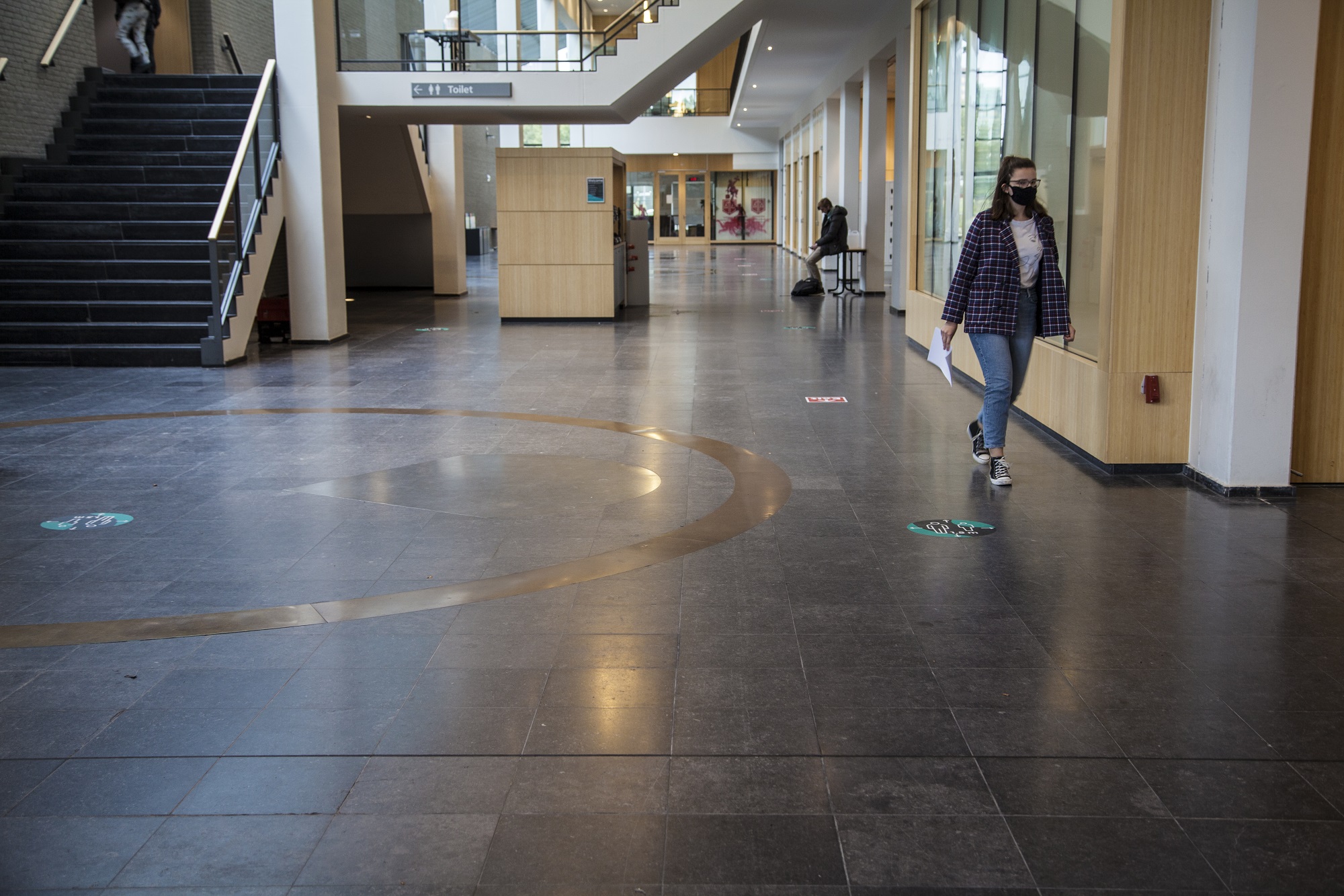 Wel grappig als ik rond loopt op de campus zie ik meer studenten zonder mondkapje dan met. En is het ook drukker dan op de foto’s.