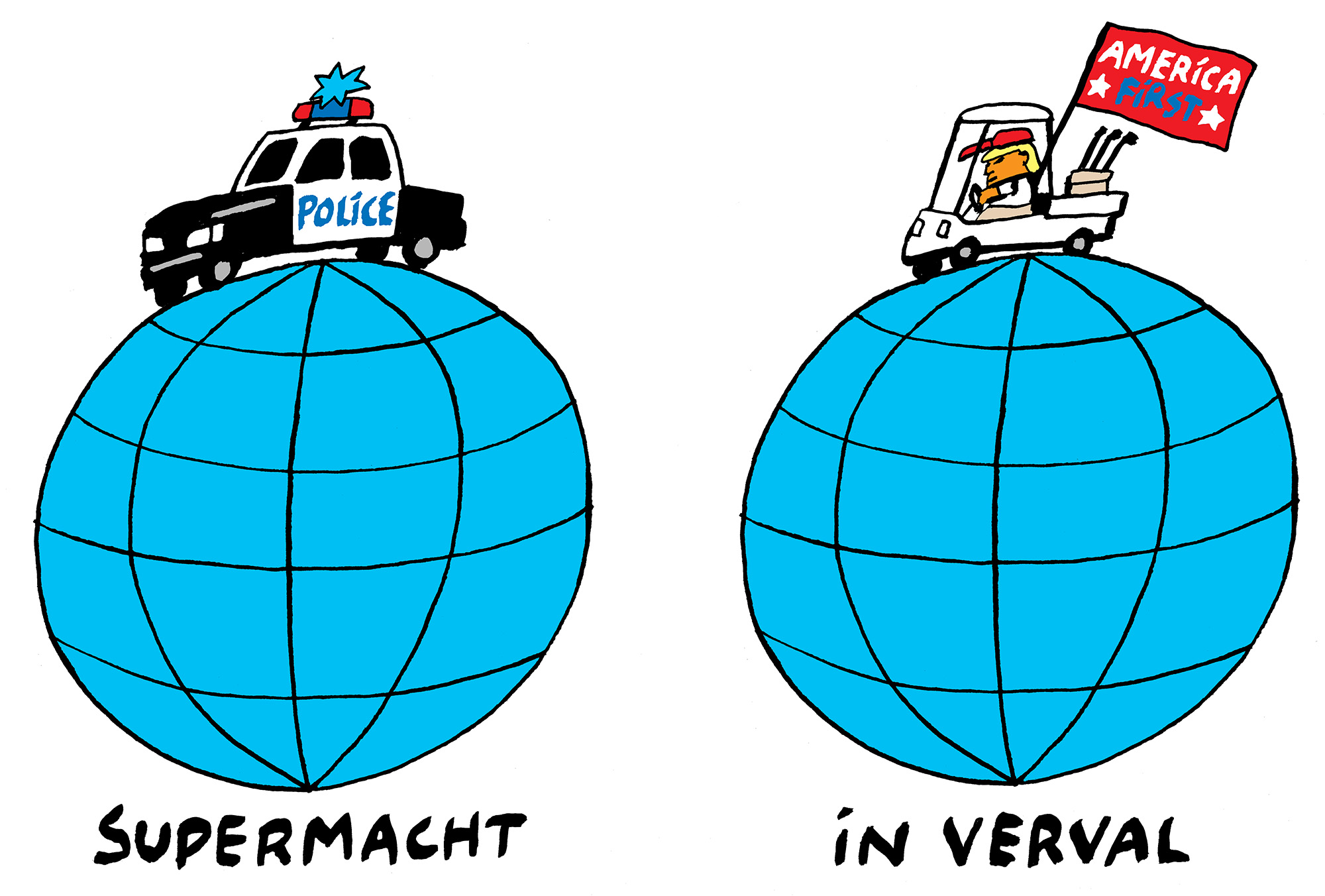 “Het Amerikaanse buitenlandbeleid heeft de afgelopen eeuw gedraaid om de wereldwijde promotie van democratie, tot toenemende irritatie van leiders die vonden dat er heus wel andere manieren waren om een succesvol, welvarend land te worden. Niet voor niets circuleerden er nog diezelfde avond allerlei memes, bijvoorbeeld van Vladimir Poetin en Xi Jinping die het glas hieven op de val van het grote Amerika. Iedereen die de afgelopen decennia door de VS op de vingers is getikt, heeft zich zitten verkneukelen.”