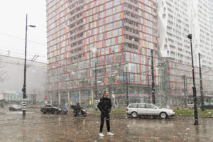 “Rotterdam is echt de stad van kansen he”, zegt Nur. Na een koffie gehaald te hebben bij het Paviljoen lopen we langs Polak en zo de campus af. Ze kijkt even richting het centrum van Rotterdam “Ik heb zo het gevoel dat hier veel kan. Laatst bijvoorbeeld toen er teksten op het Tinbergengebouw geprojecteerd werden, dat was een initiatief door de hele stad. Dat vond ik zo ontzettend tof!” Al vanaf haar komst naar Rotterdam zegt ze hier ‘superblij’ te zijn. Ze heeft nog steeds een goed gevoel bij de stad. Misschien zou ze hier na haar studie wel kunnen blijven, zegt ze nu hardop.