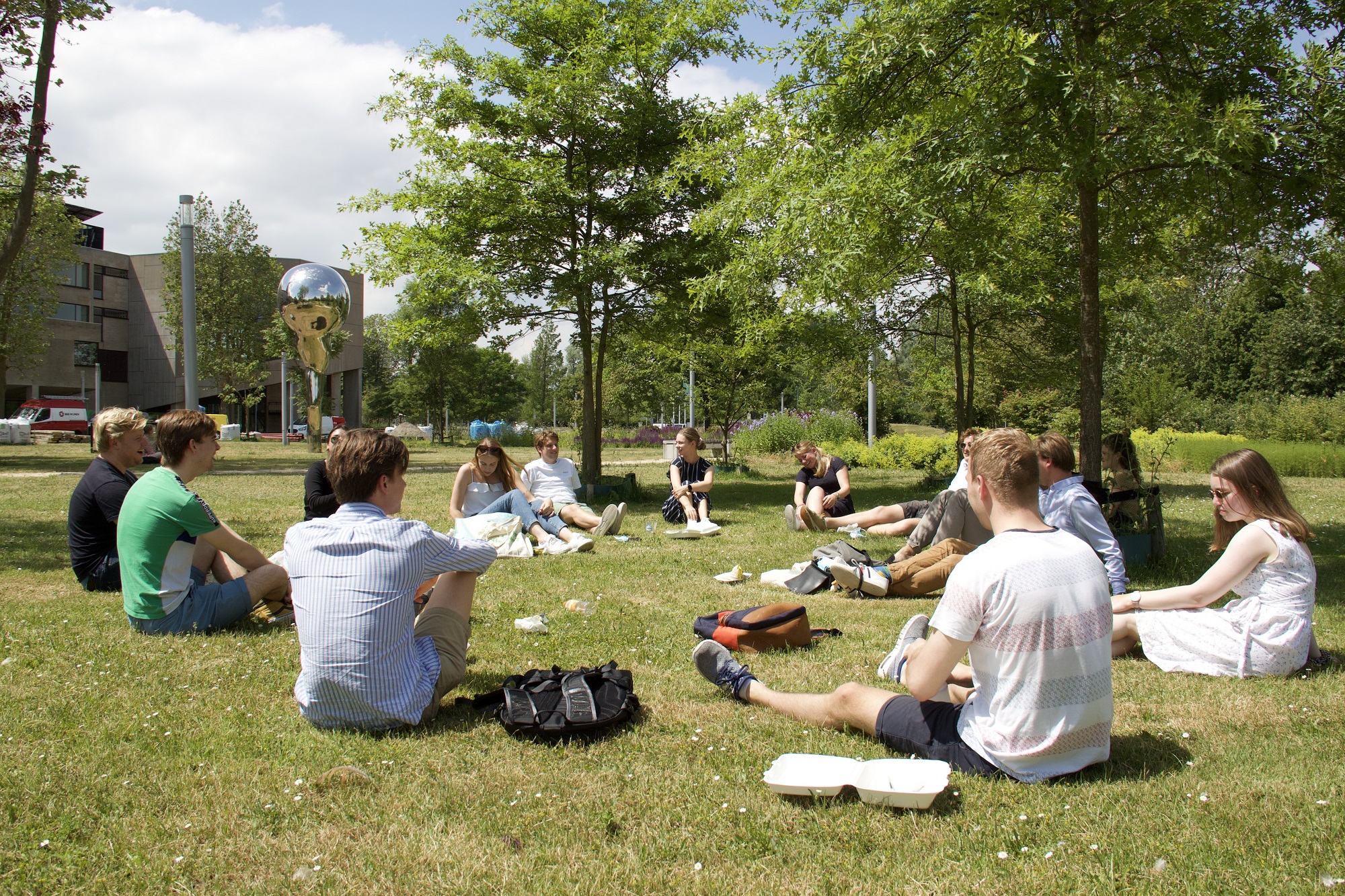 Met dit weer is het heerlijk in het park. Dus ook in Park Noord (op campus Woudestein).