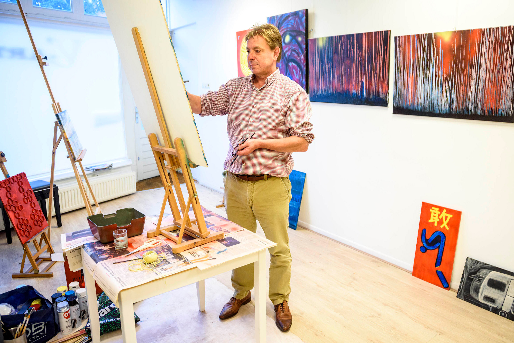 Philip Hans Franses schildert gorilla’s en bosbranden in zijn Delfshavense atelier