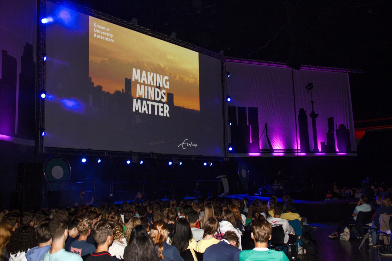 Vervolgens presenteerden verenigingen zich, met een choreografie van Erasmus Dance Society, de klassieke roeiboot van Skadi en veel springende leden van de studentenverenigingen. Een ontroerende video over het goede doel van dit jaar, het Familiehuis Daniel den Hoed, maakte de tot dan toe uitbundige zaal muisstil. Na de oproep van Wies en Bo om gelijk al een donatie te doen via Tikkie, kwamen de telefoons massaal uit de broekzakken van de eerstejaars.