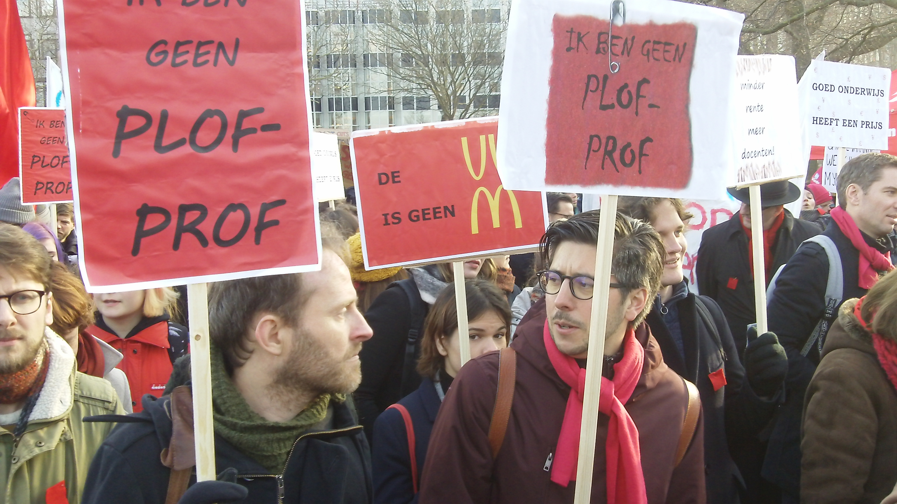 Overigens kreeg niet alleen de minister ervan langs tijdens de bijeenkomst, ook universiteitsbesturen waren het mikpunt. Zij steunen weliswaar de roep om meer financiering, maar geven intussen lang niet genoeg medewerkers een vast contract. Als daarin voor de kerst geen verbetering komt, moet er maar eens een echte staking volgen, stelde actiegroep Casual Leiden, die teleurgesteld is over de jongste universitaire cao. Er klonk applaus, en ook FNV-bestuurder Jan Boersma steunde dit plan, mede namens collega-vakbond AOb.