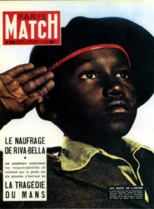 Het volgende plaatje is een kaft van een Frans tijdschrift, waarop een zwarte jongen staat die een saluut brengt. Niets bijzonders, zou je denken, maar via de chat raadt een Franse student de betekenis: het is propaganda voor Frans imperialisme, en verwijst naar koloniale trouw aan Frankrijk. Aans grijnst. “Ik had verwacht dat jij dat zou kunnen antwoorden”, zegt ze tegen de student. “Goed gedaan!”