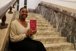 “Ik wil vrij zijn… en stromen als de golven van de oceaan”, zei Cindy Steward met een krachtige maar toch zachte stem, terwijl ze voorzichtig de pagina’s van haar zorgvuldig vervaardigde boek Memoria of Heart opende: een reis door depressie, verdriet en giftige relaties. Steward, een tweedejaarsstudent aan het Erasmus University College, las dinsdagavond voor een intiem publiek enkele gedichten voor uit haar gepubliceerde boek, als gastspreker tijdens de opening van de collectie Reading Without Borders.