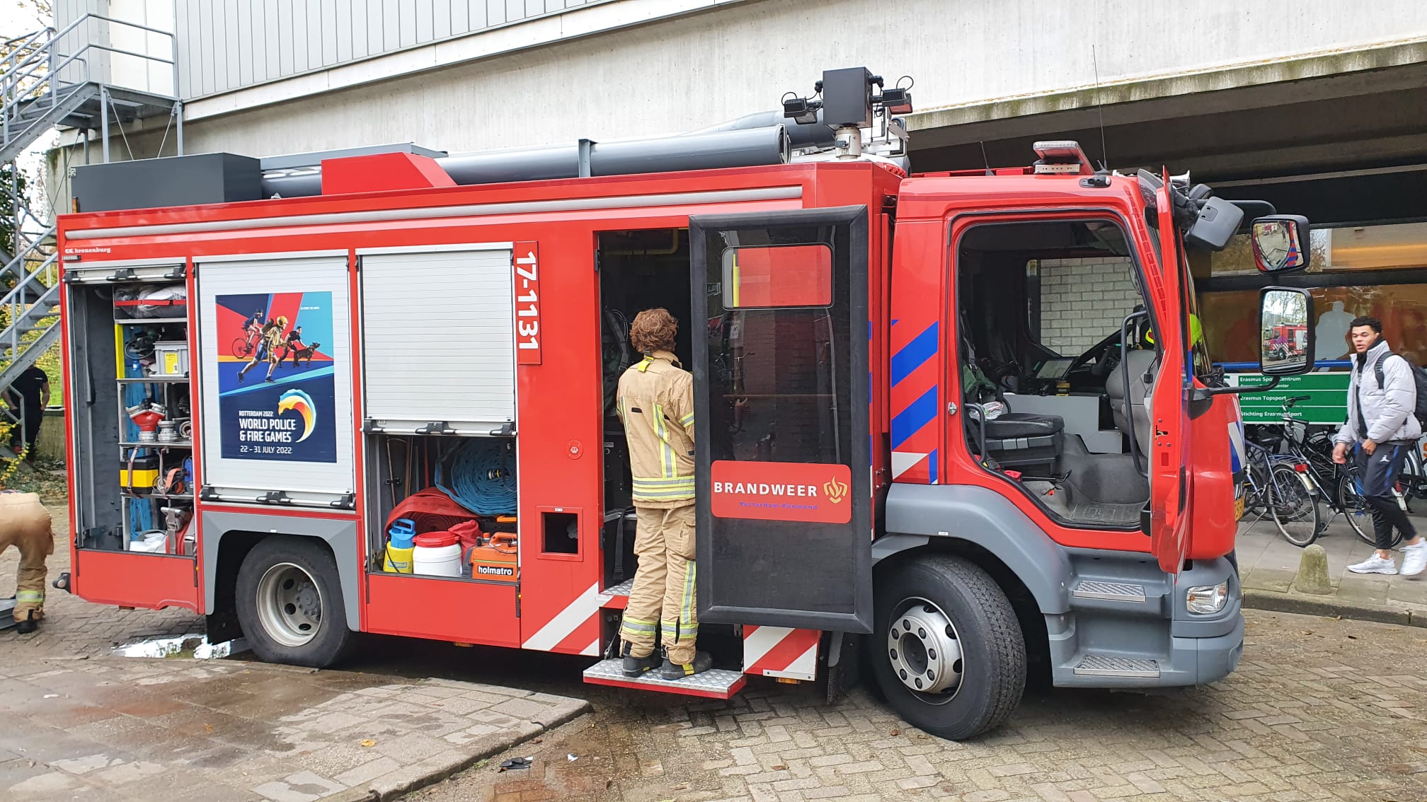 Donderdag rukten een stoet van twee brandweerbussen, een bus met ladder, een ambulance en een onderzoeksteamwagen uit naar campus Woudestein. Ze kregen een automatische brandmelding door van een detector in het F-gebouw.