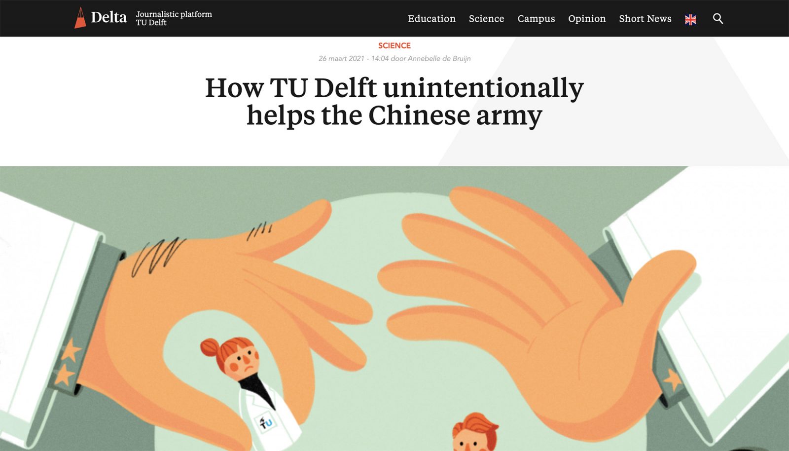 Delta, het journalistieke platform van de TU Delft, heeft de belangrijkste prijs voor journalistiek in het hoger onderwijs gewonnen voor het artikel ‘Hoe de TU Delft onbedoeld het Chinese leger een handje helpt’.