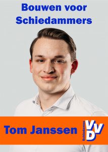 Voor Tom Janssen, nummer drie op de lijst en campagneleider van de Schiedamse VVD, kwamen nagenoeg al zijn wensen uit. Zijn partij behield het huidige aantal van zes zetels, bleef de grootste partij van de stad en haalde een hoger percentage stemmen dan vier jaar geleden. De uitslag zorgde dan ook voor trots bij Janssen.
