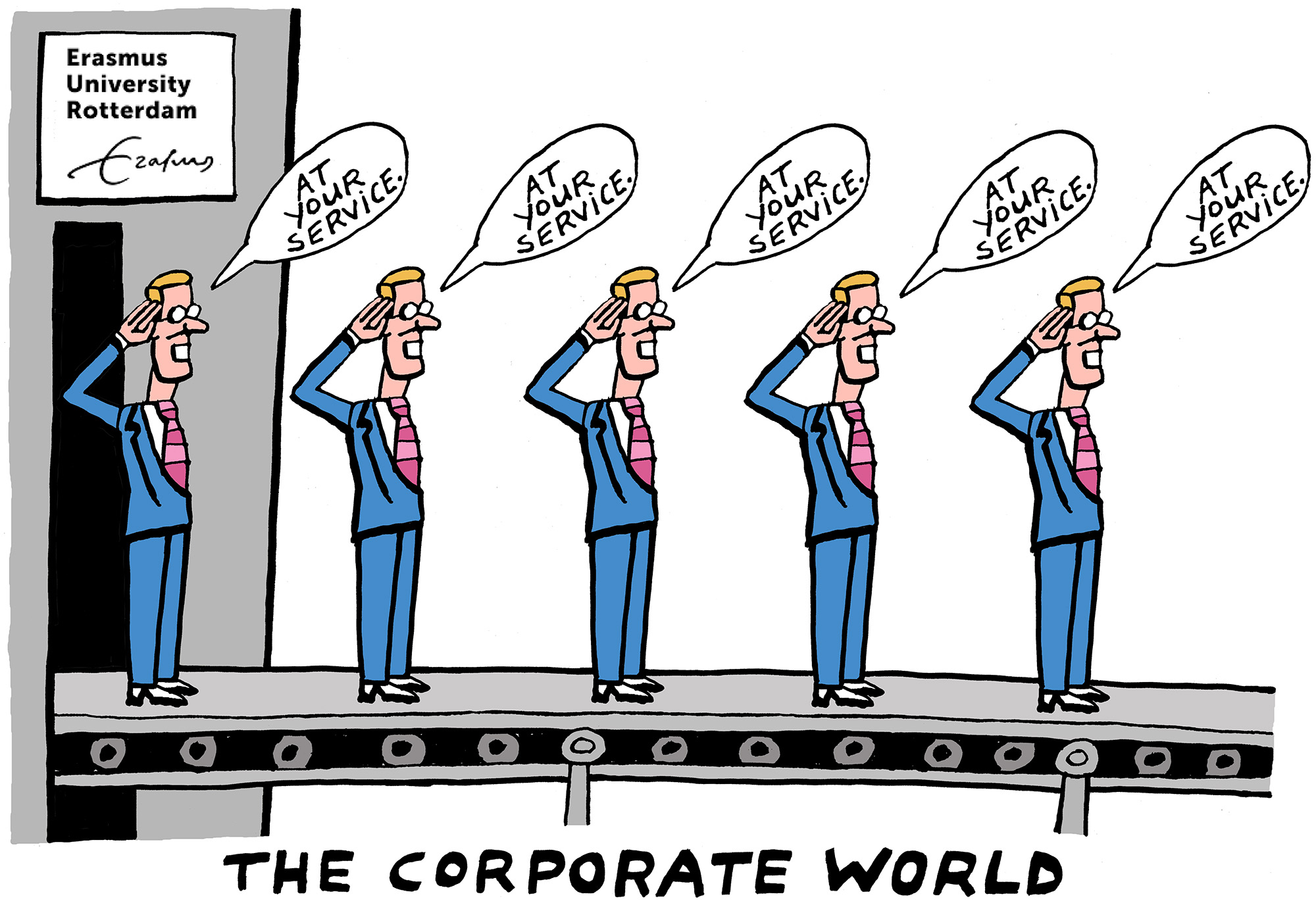 “Dat geldt voor de universiteit in het algemeen. Van de Leidse rechtenfaculteit is bekend dat die een grote rol speelt bij de productie van nationale elites. De Erasmus Universiteit heeft een hele corporate signatuur. Hier worden de volgende generaties kapitalistische bestuurders opgeleid.