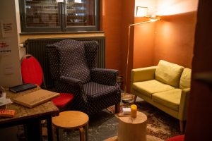 In de kleine kamer van 9m2 zitten zes studenten. Ze zijn net klaar met hun gebed. “Tijdens de gebedsweek kunnen studenten deze ruimte een of twee uur reserveren om samen te bidden, de bijbel te lezen of over het geloof te praten”, vertelt bestuurslid Eveline van Seters. “We organiseren een gebedsweek in de hoop dat meer mensen in contact komen met God. We nodigen iedereen uit om hiernaartoe te komen. Onze vereniging is natuurlijk voor christelijke studenten, maar het is juist tof als we ook een gesprek kunnen aangaan met niet-gelovigen.”