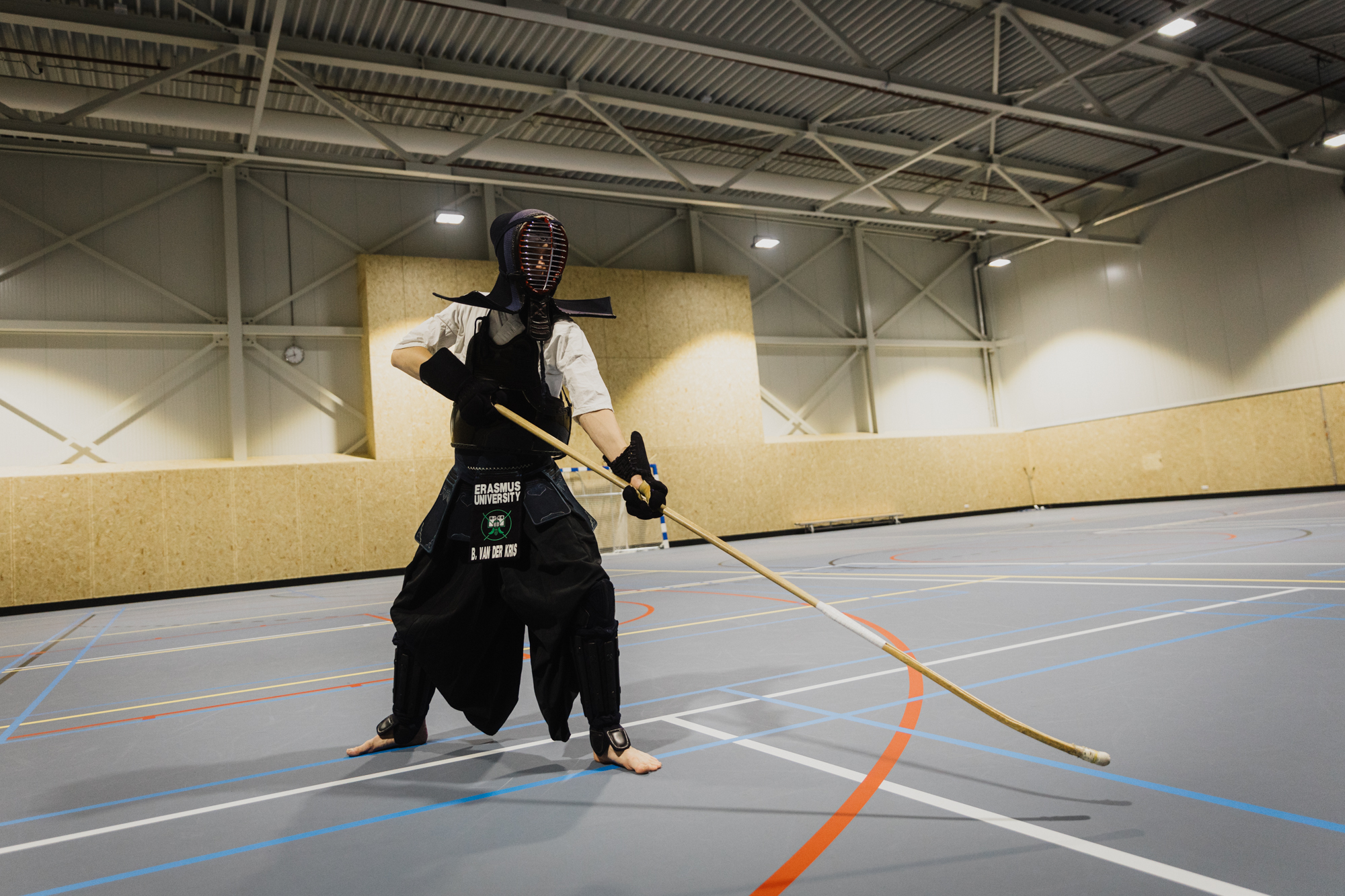 Bas van der Kris (23) doet al vier jaar aan naginata en gaat dit weekend naar het EK in Brussel. Door naginata doet hij niet alleen defensieve vaardigheden op, het draagt ook bij aan zijn geestelijk welzijn en aan andere hobby’s.