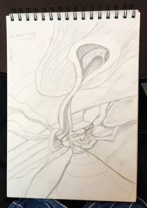 Soms heeft hij later pas door wat een tekening betekent, legt hij uit. “Ik denk dat je me eigenlijk beter zou leren kennen als je naar de tekeningen kijkt, dan als je naar mijn gezicht kijkt. Als mensen door het schetsboek zouden bladeren, zouden ze er waarschijnlijk achter komen dat ik een beetje gek ben. Dus het is goed dat ze dat niet doen.” Zijn volgende tekening gaat over zijn verhuizing naar Rotterdam. Dat was een heftige periode, door een auto-ongeluk en aanhoudende huisvestingsproblemen. “Er is veel om mee te werken”, erkent hij, en kijkt ernaar uit om dit binnenkort te verwerken in zijn tekeningen.