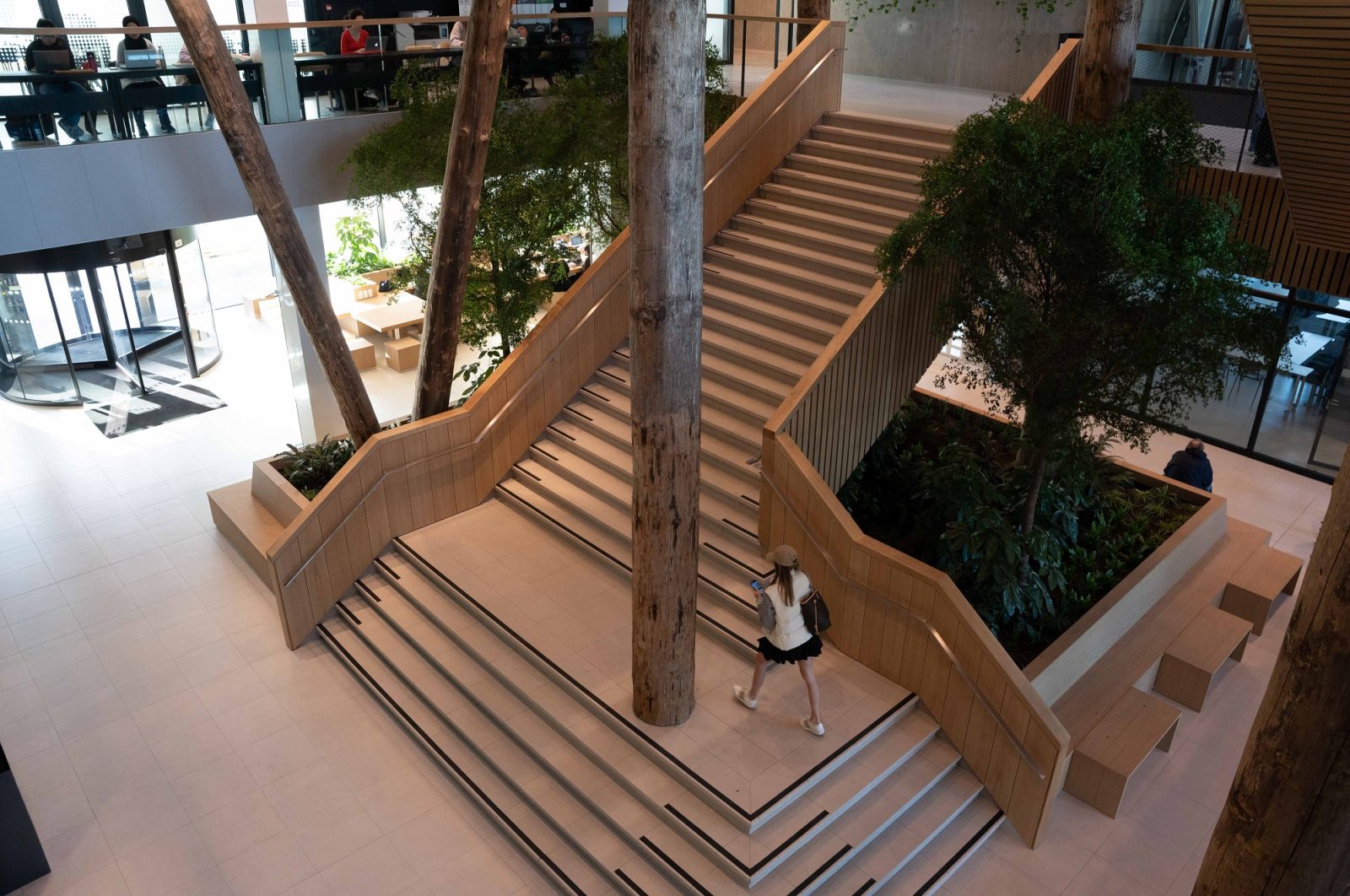 De mooiste vindt hij de trap. “Het is het middenstuk van het gebouw, alle ruimtes zijn eromheen gebouwd. Van de trap heb je zicht op verschillende etages en al het groene, het maakt het leuk om de trap te gebruiken in plaats van de lift.”