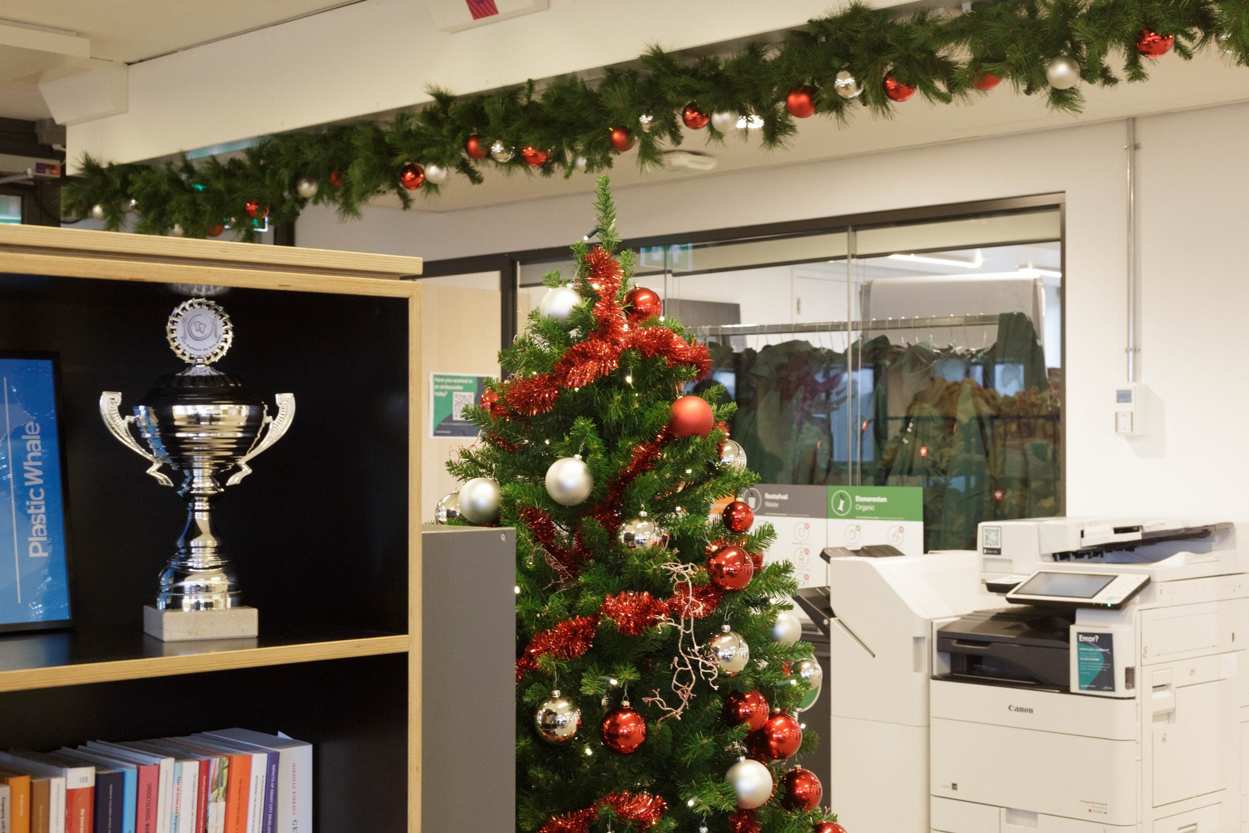 Vol verwachting zijn fotograaf Thanh Nguyen en ik op pad gegaan om te kijken wat de verschillende kantoren aan kerstversiering te bieden hebben. Maar aangezien veel mensen nog steeds gedeeltelijk vanuit huis werken, zijn de meeste kantoren niet of nauwelijks versierd. In de centrale kantoren van het Erasmusgebouw treffen we een hele ‘kerstversieringvrije zone’ aan.