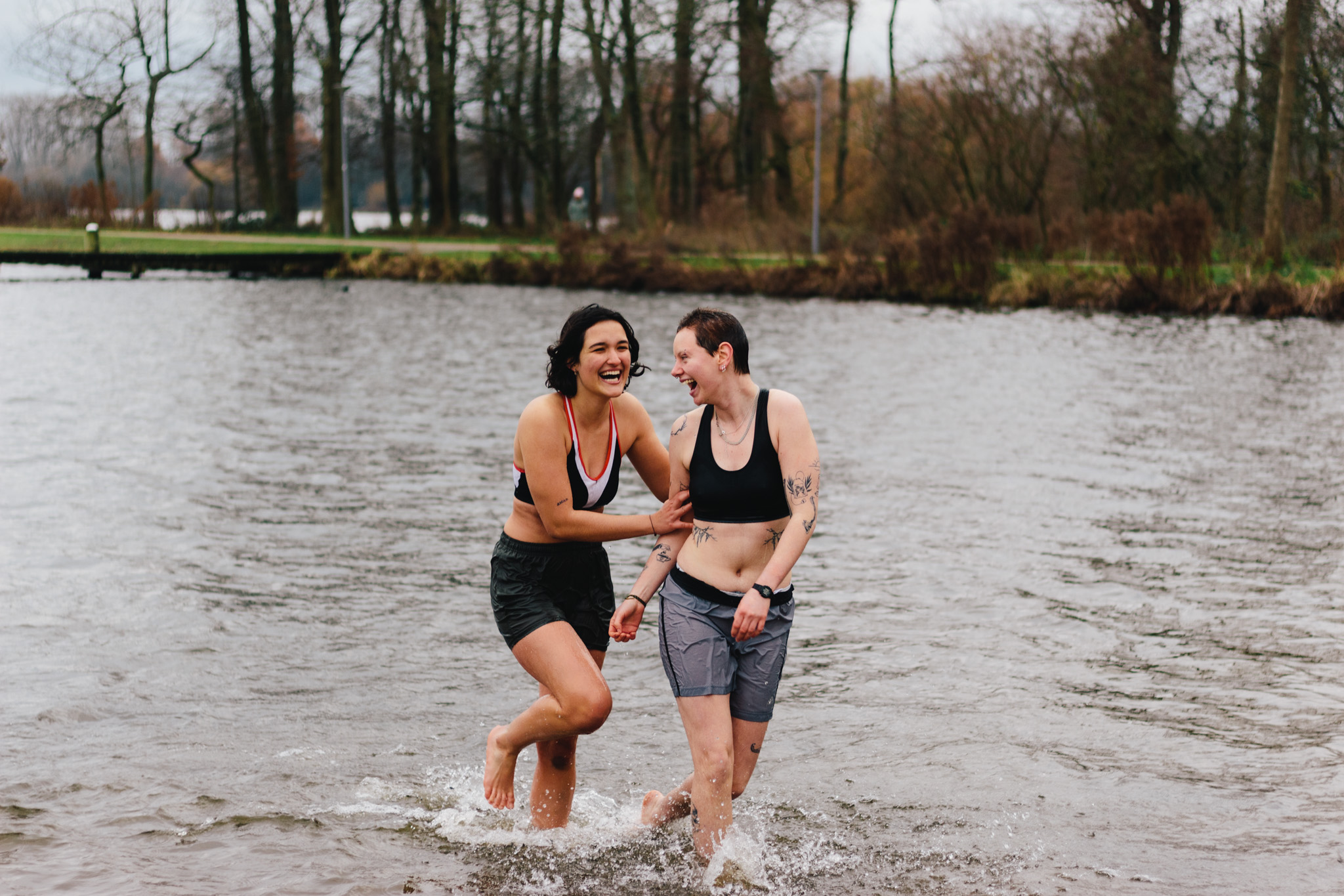“Ik zie het vooral als uitdaging en persoonlijke ontwikkeling”, zegt Jaqueline Geihe (Management of International Social Challenges), “maar ook als onderdeel van mijn training.” Ze doet aan Braziliaanse Jiu Jitsu. Persoonlijke ontwikkeling is ook voor Aidan Brinda (International Bachelor Communication and Management) een reden om mee te doen aan de duik. “Ik heb het nu echt heel koud”, zegt hij achteraf. “Ik had mijn sokken aan moeten doen.”