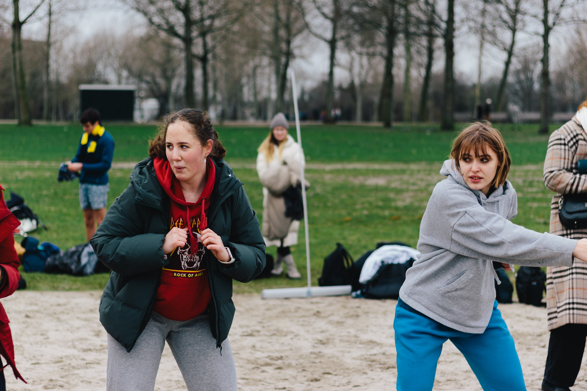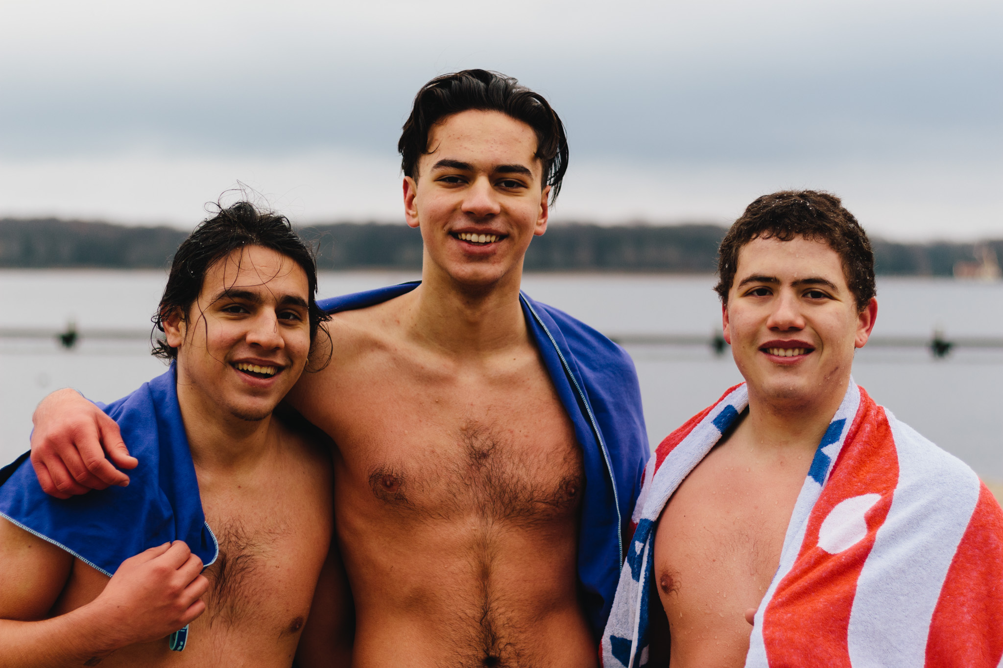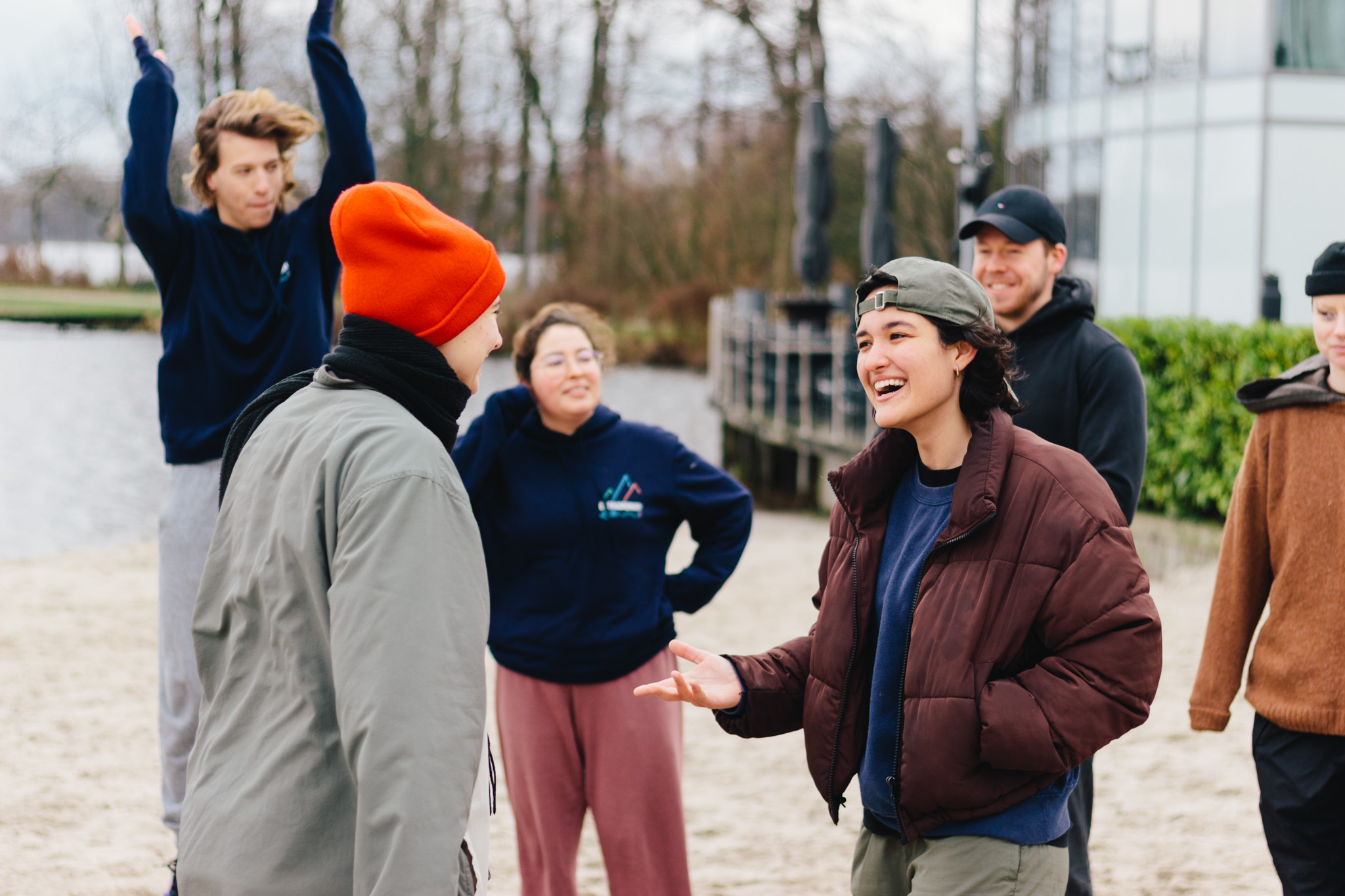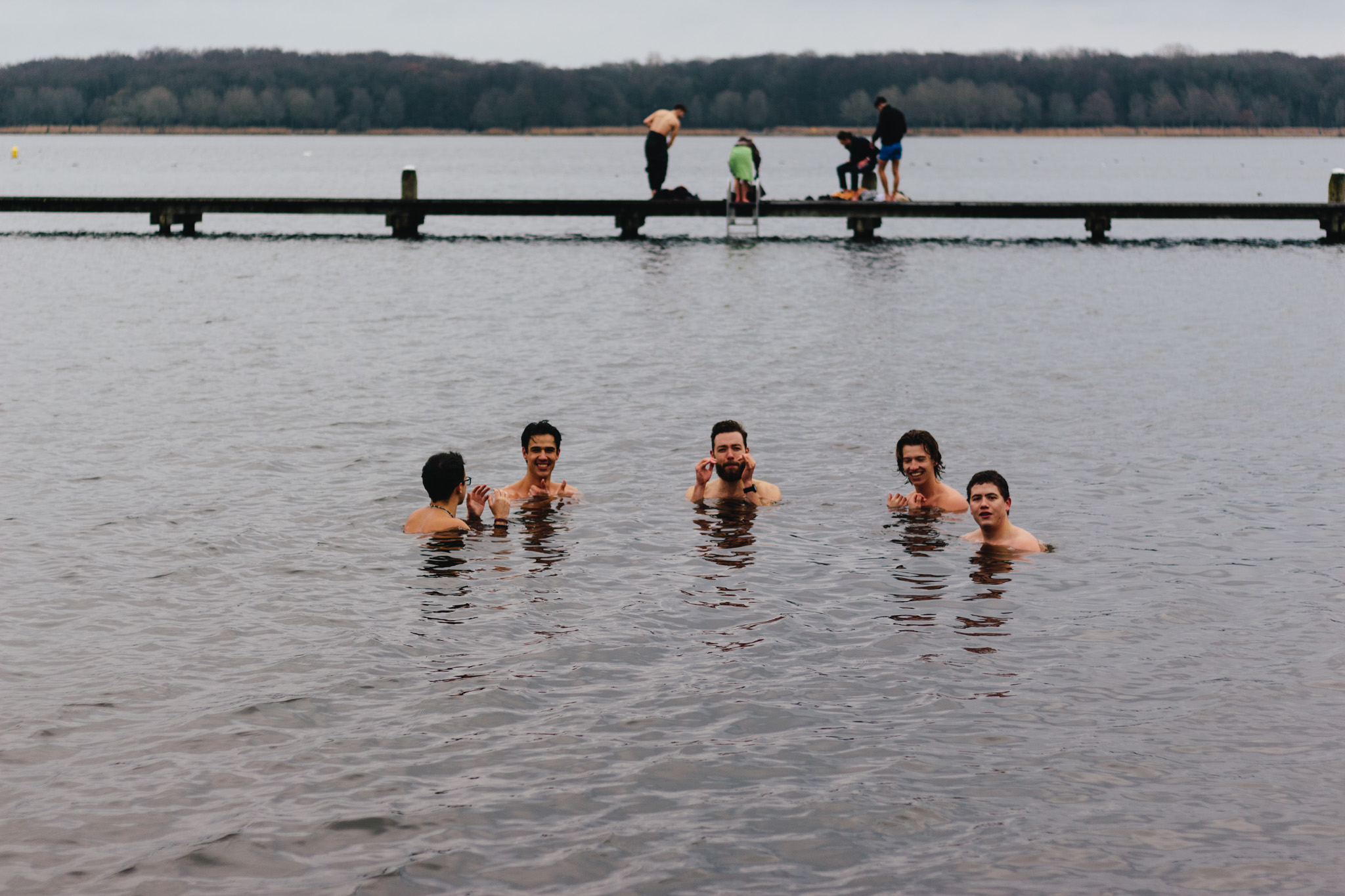 Het is net boven nul, maar door de wind voelt het zondagmiddag flink kouder op het strand van de Kralingse Plas. Rond één uur staan twintig studenten samen te bewegen. Ze doen een warming-up voor de polar bear plunge, een soort verlate nieuwjaarsduik.