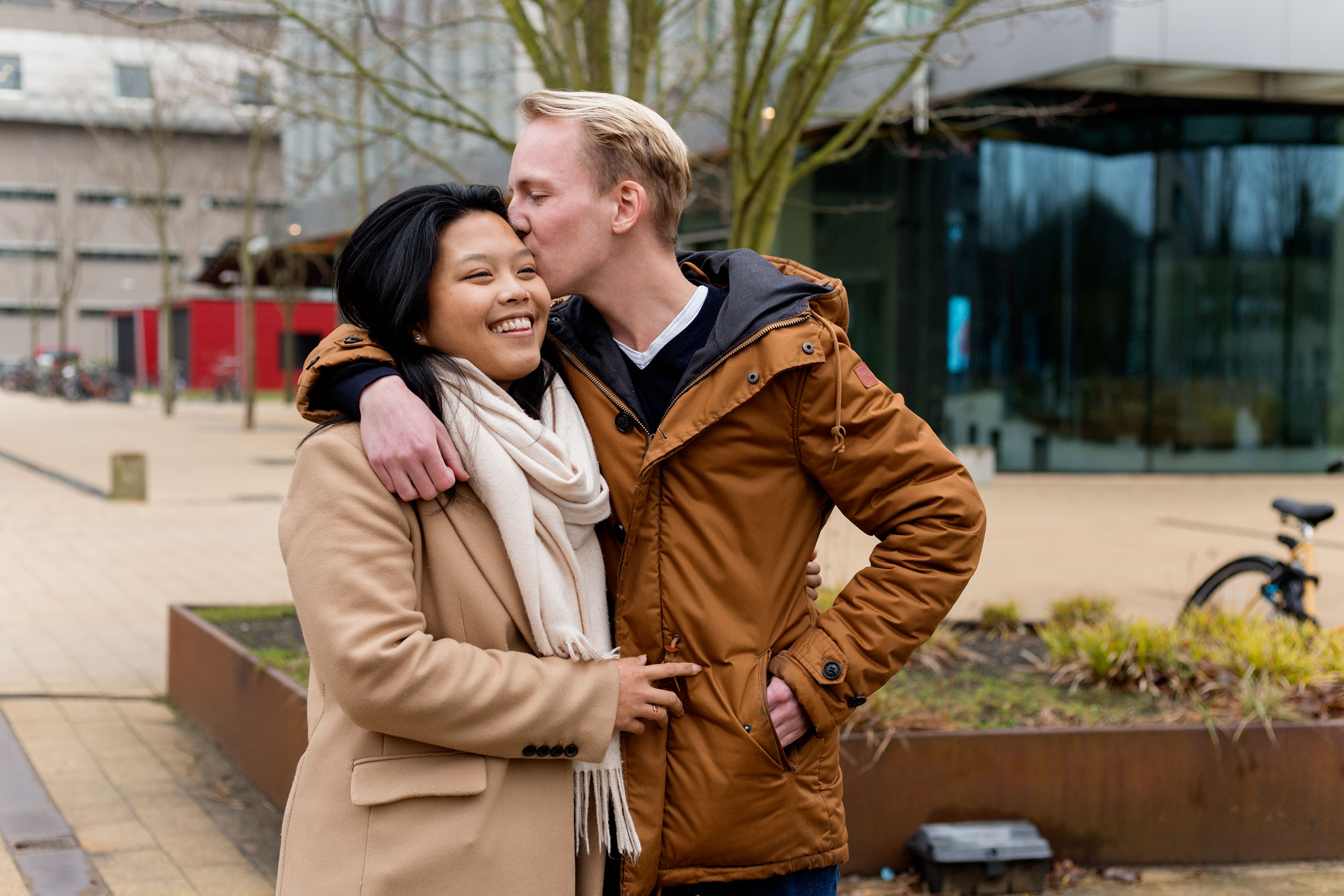 Sommige fotografen spotten vogels. Sommigen leggen gebouwen, bloemen, dieren of kleding vast. Fotograaf Aysha Gasanova ging campus Woudestein op om verliefde koppels te fotograferen.