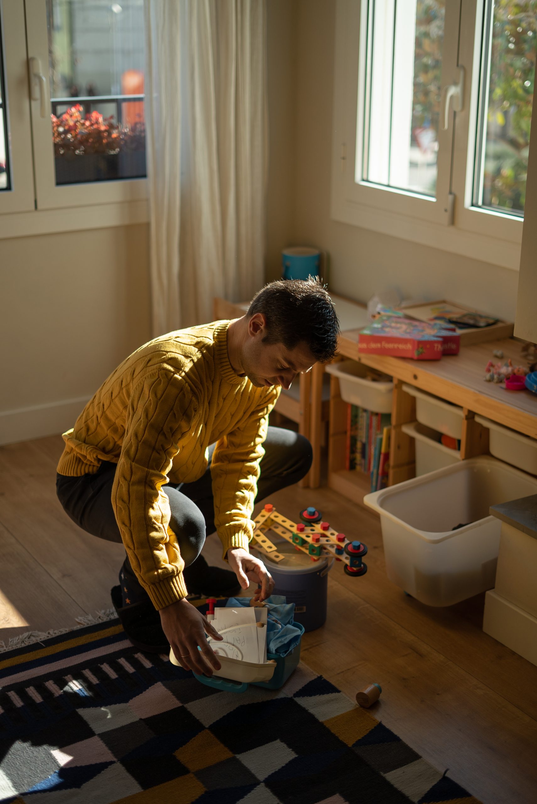 Toch waren de taken in het begin van zijn thuisblijfvaderschap nog niet gelijk verdeeld. “Mijn vrouw deed meer dan ik in het huishouden, terwijl ik elke dag thuis was”, zegt hij. “Ik dacht: als ik het niet doe, doet zij het vast wel. Net zoals bij veel andere vaders had ik die vooringenomenheid.”