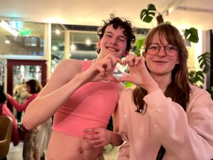 Officieel is het feest al begonnen, maar de slingers moeten nog worden opgehangen. De maandelijkse borrel van Erasmus Pride, de lhbti+-studentenvereniging van de Erasmus Universiteit heeft vandaag een roze tintje. Officieel is de naam ‘Pink Pretty Pillow Princess and Prince Party’. Wat een Pillow Princess is? Louka (21, International Bachelor Communication and Media) grinnikt. “Dat is een term uit de lesbische cultuur en verwijst naar vrouwen die tijdens seks vooral graag achteroverliggen en zelf weinig willen doen. Of ik dat zelf ben? Absoluut niet!”