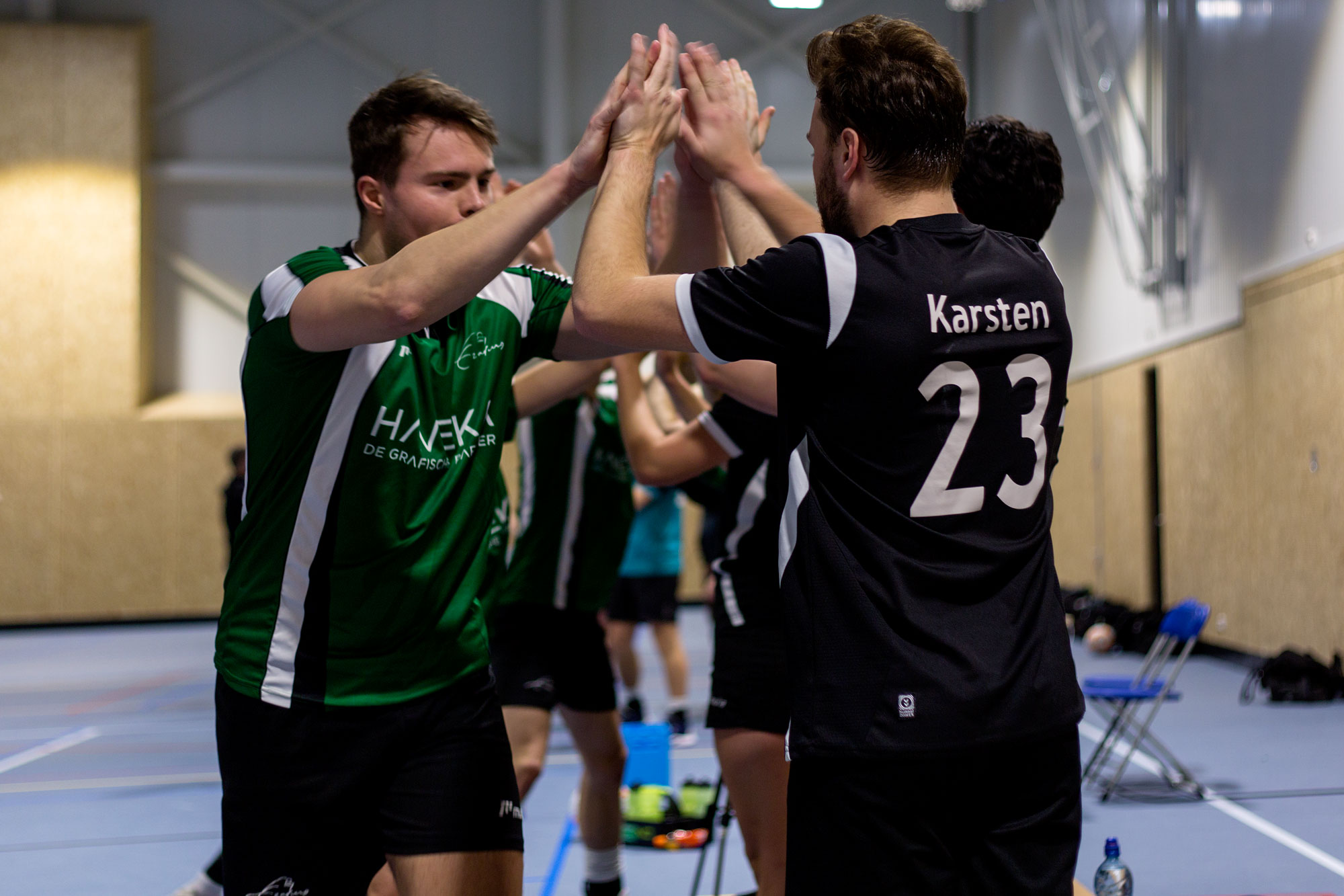 De ploeg is erop gebrand kampioen van de tweede klasse te worden, wat volgende week al kan. Mocht dat gebeuren, dan zou volgens aanvoerder Jelmer Bastiaans (24, afgestudeerd in media en journalistiek) een cliché over korfballers waarheid kunnen worden. “De enige keer dat we samen douchen is als we kampioen zijn, en dat kunnen we worden als we volgende week winnen”, lacht hij.