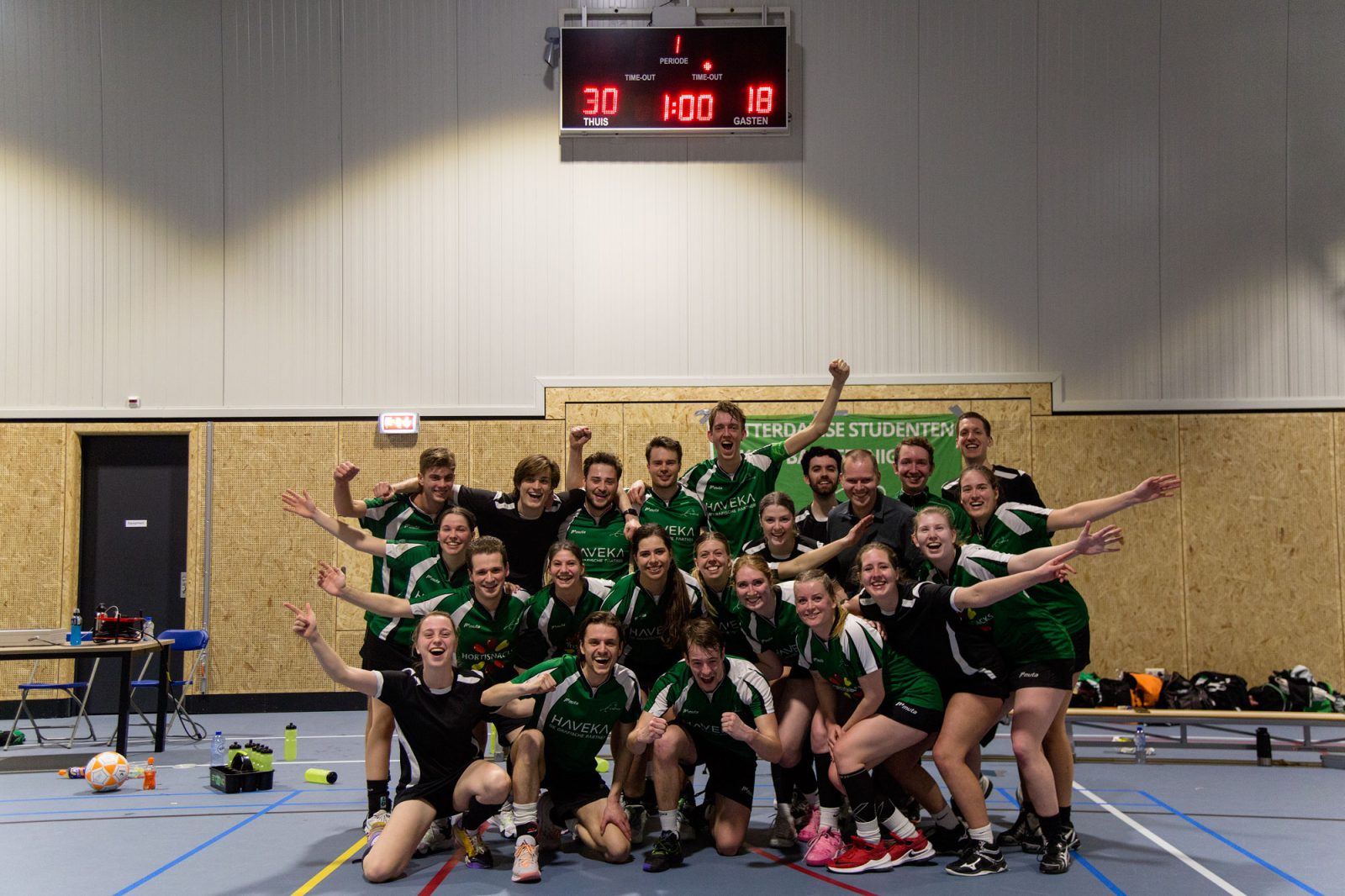 Na afloop viert het team het bereiken van de eerste klasse. Gejuich, gezang, vreugde en bier worden door iedereen gedeeld. “We beginnen met bier, en dat is nog maar het begin”, lacht Sanne Dikkenberg (18, Liberal Arts & Sciences). Ongeacht het overvolle weekendschema van het team zijn ze van plan om ervan te genieten. “Sommige leden van de vereniging zullen het in Groningen vieren omdat daar een toernooi is”, zegt Roos Meijer (22, Financiële Economie). “Zelf zullen we het hier in ons eentje vieren met biertjes en daarna gaan we waarschijnlijk uit.”