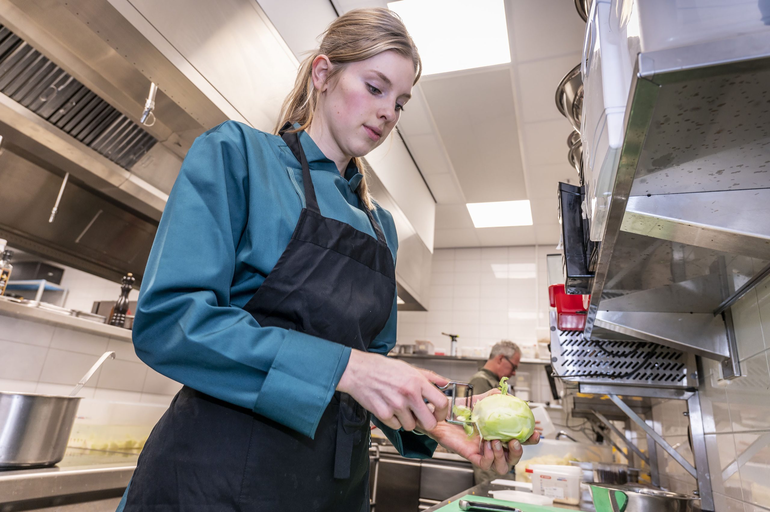 Ze vindt het tot nu toe ‘hartstikke leuk’ op de academie en in het restaurant, vertelt ze. “Ik vind het heel fijn dat ik de hele dag lekker bezig ben.” Het praktische karakter van haar opleiding miste ze op de universiteit. “Wanneer ik hier iets heb geleerd, zoals een bereidingswijze, kan ik dat meteen toepassen in de praktijk. En wanneer ik een gerecht heb gemaakt, kan ik het meteen zien, proeven en ruiken. Op de universiteit en bij mijn vorige werk was het resultaat minder tastbaar.”