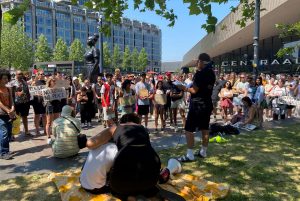 Ongeveer honderd demonstranten verzamelden zich zaterdagmiddag voor het Centraal Station in Rotterdam om te protesteren tegen de uitkomst van de zaak Sanda Dia. De demonstranten zien in het dodelijke ontgroeningsritueel van de Belgische student een racistisch motief en vinden dat de straffen die de daders hebben gekregen niet overeenkomen met de ernst van de zaak.