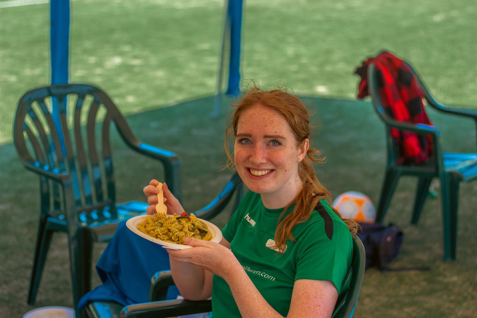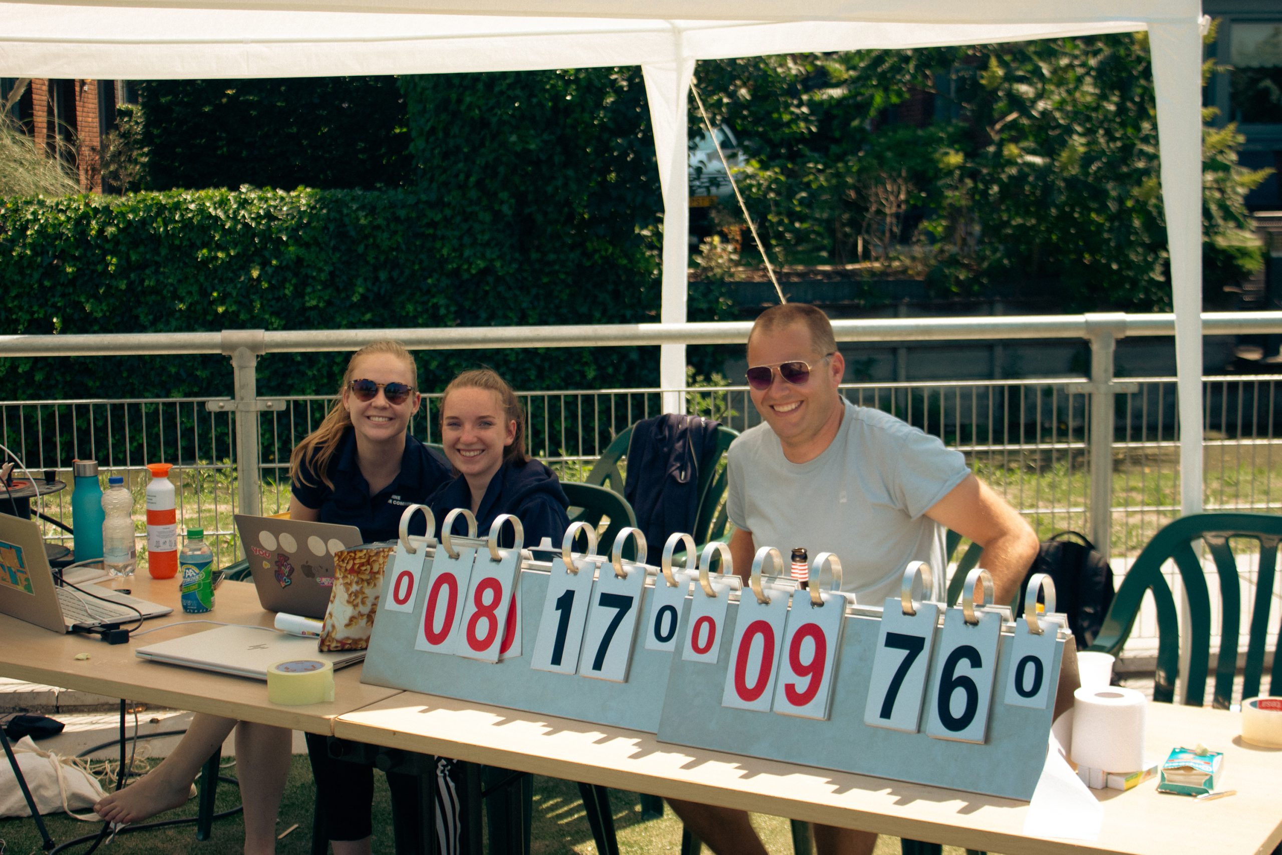 Net buiten het veld waren twee tenten opgezet. De grootste van de twee bood schaduw aan de wisselspelers, die tussendoor genoten van een door een sportvoedingsdeskundige samengestelde lunch van pasta met groenten. Naast de tent stond een opblaasbaar zwembad, waarin de door de hitte geteisterde spelers af en toe hun toevlucht zochten. De kleinere tent bood niet alleen beschutting aan de twee mensen die de score bijhielden, maar ook aan het belangrijkste apparaat bij deze gelegenheid: de camera. Die camera was essentieel, want daarmee werd de hele wedstrijd opgenomen als bewijs voor Guinness World Records.