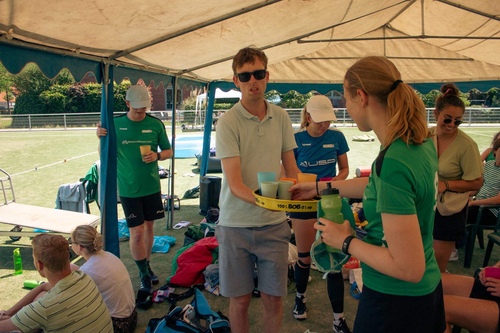 Hoewel er familie en vrienden waren die de spelers aanmoedigden, was zondag inderdaad een grotere uitdaging. Dat was goed te zien aan de reservebank in de tent. Wisselspelers deden zoveel mogelijk een dutje op een opblaasbaar matras en werden vervolgens wakker met rode ogen. Tassen lagen overal verspreid en elk ijspak op de camera smolt zo snel als de score opliep.
