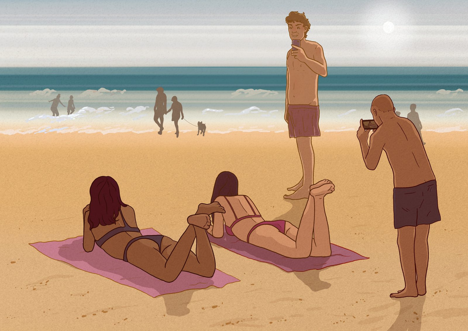 Een paar weken geleden merkte derdejaarsstudent Psychologie Aslınur Kavuncu (20) uit Turkije dat een groep jongens haar en haar vriendinnen op het strand in Scheveningen aan het filmen waren, terwijl zij alleen maar in de zon wilden liggen. “Mijn vriendinnen zeiden dat een paar jongens ons al een tijd lang in de gaten hielden, en toen ik opkeek, zag ik dat ze hun mobiele telefoons recht op ons gericht hadden”, vertelt ze. “Ze schaamden zich er niet voor. Ze zaten recht voor ons en bleven maar naar ons kijken.”