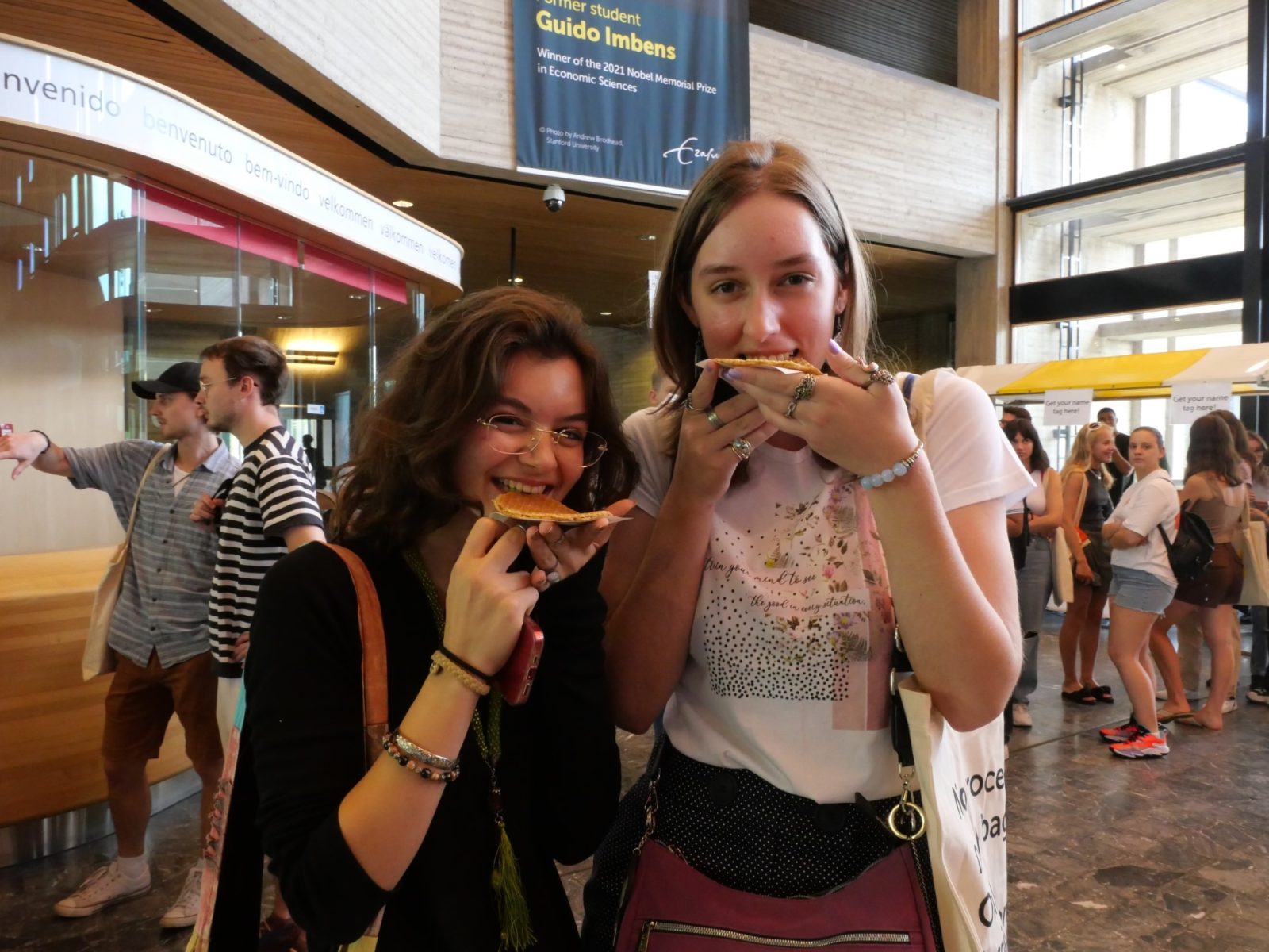 Elif (18, uit Turkije) en Andjelija (19, Servië), binnenkort psychologiestudenten, kijken al meer dan tien minuten uit naar de smaak van deze ‘something waffle‘ – ‘we weten de naam niet’. Tijdens het wachten vertellen ze dat aanpassen aan Nederland niet zo moeilijk is als ze hadden verwacht – in ieder geval makkelijker dan het woord stroopwafel onthouden. “Het is makkelijk om met mensen te praten, iedereen is zo ruimdenkend, er zijn zoveel mogelijkheden om uit te gaan en nieuwe vrienden te maken”, legt Andjelija uit. Elif onderbreekt haar idyllische beschrijving en herinnert Andjelija aan haar zoektocht naar een studentenkamer. “Een huis vinden was erg moeilijk en stressvol. Het kostte ons meer dan twee maanden. Begin op tijd”, raadt Elif aan.