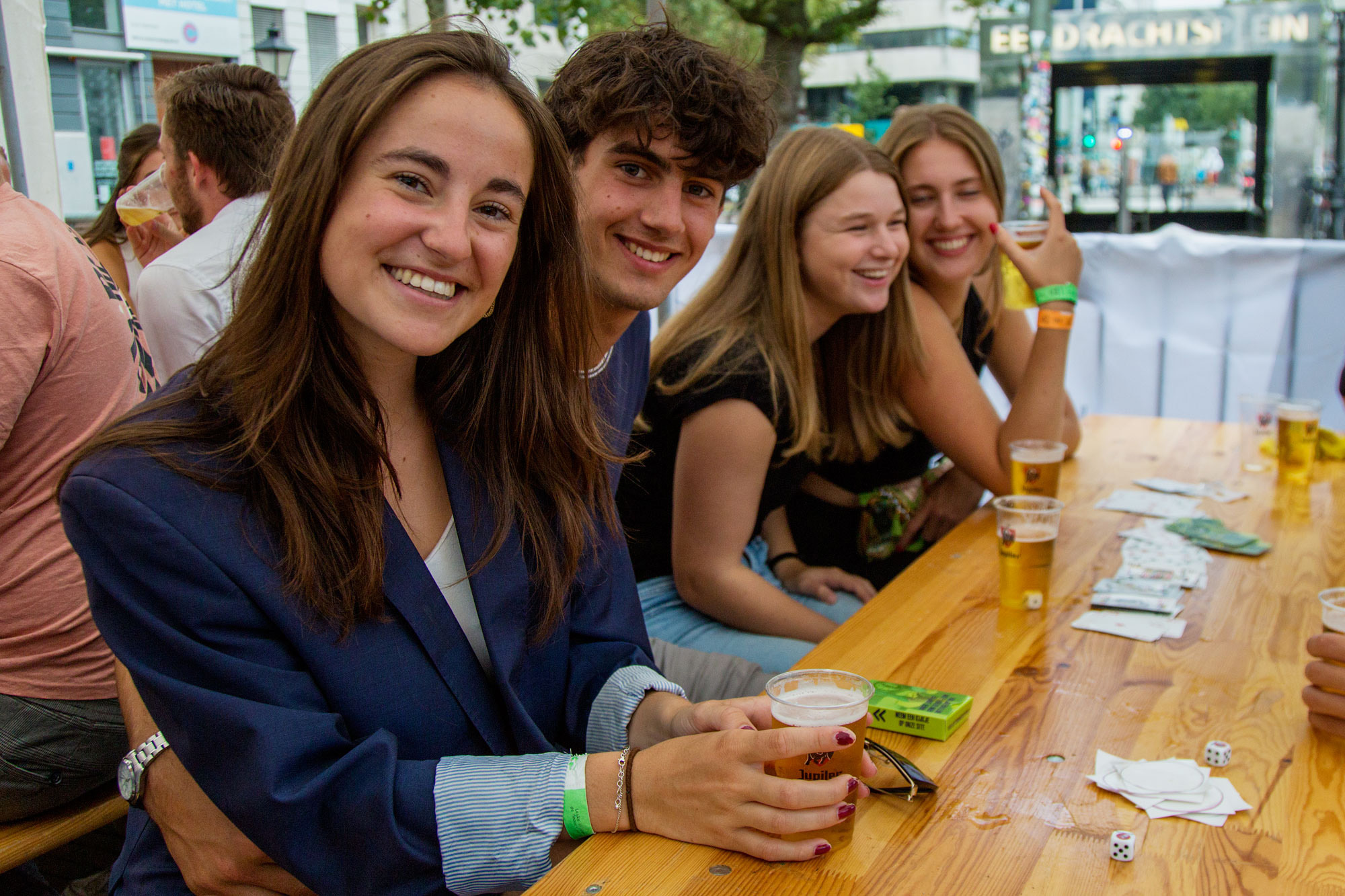 Op de laatste dag van de Eurekaweek wordt er nog fanatiek gebeerpongd op het terras van RSG.