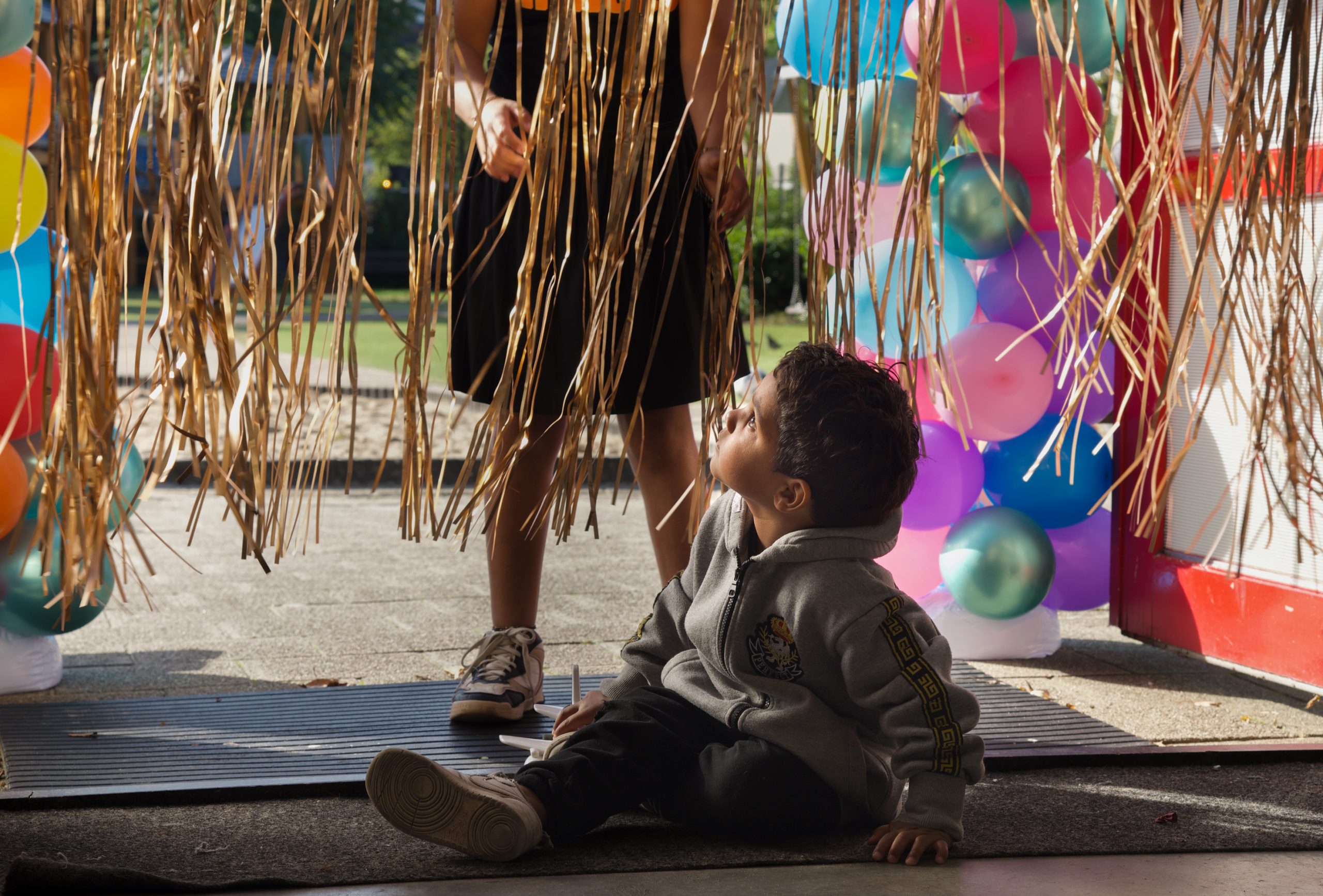 Het programma wordt verzorgd door Stem zonder Gezicht – een Rotterdamse stichting voor kinderen in armoede – in samenwerking met studenten van de universiteit. “We vinden het belangrijk om kinderen te stimuleren in hun talenten, omdat dat een manier is om uit armoede te komen en jezelf emotioneel te ontwikkelen”, zegt Vanessa Umboh, oprichter van de stichting. Ze is de hele middag druk bezig met zorgen voor en praten met ouders. “Armoede verlamt, weet ik uit persoonlijke ervaring. Je raakt je zelfvertrouwen kwijt en gaat jezelf isoleren. Bij ons kunnen mensen weer een zinvolle dag beleven.”