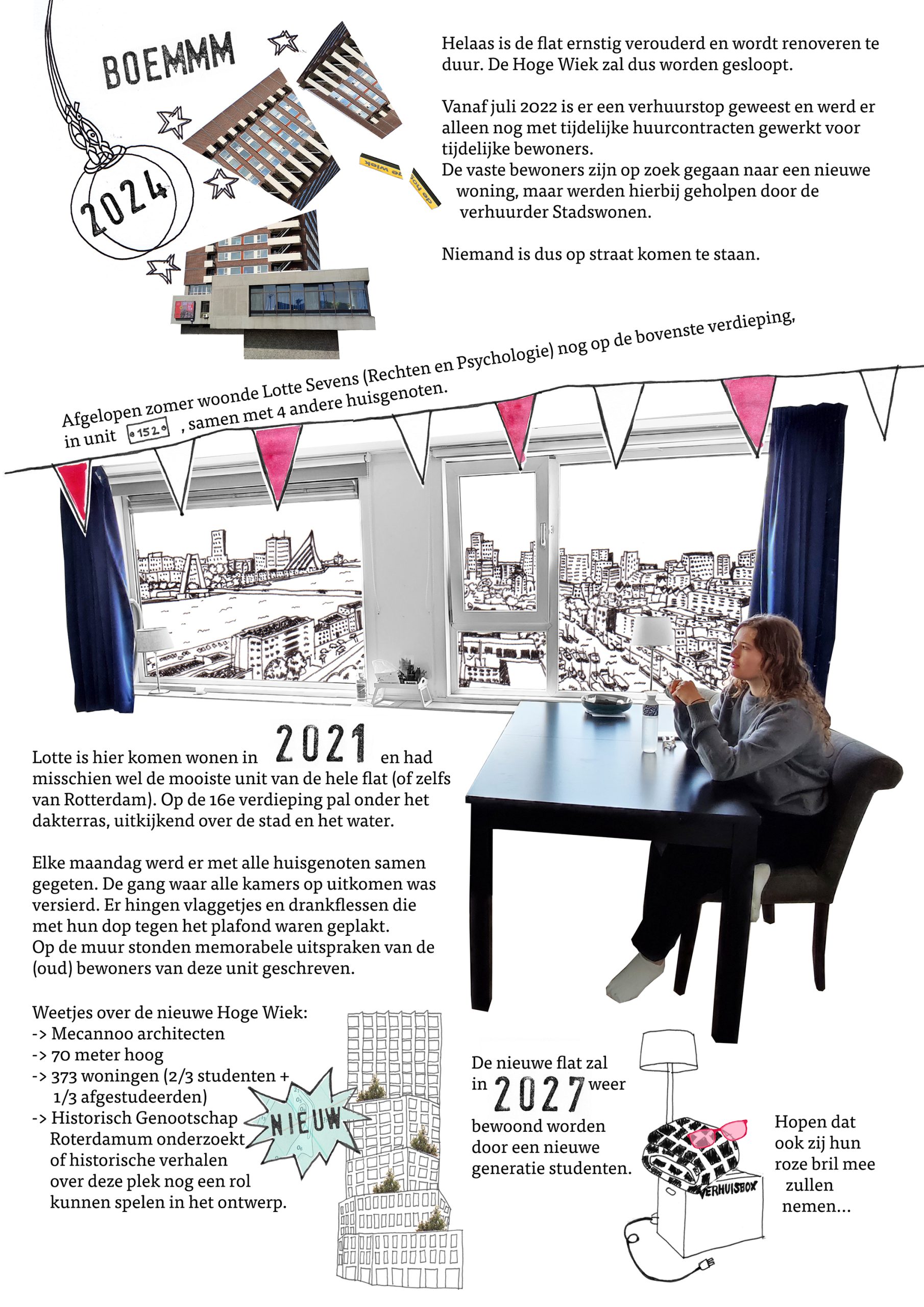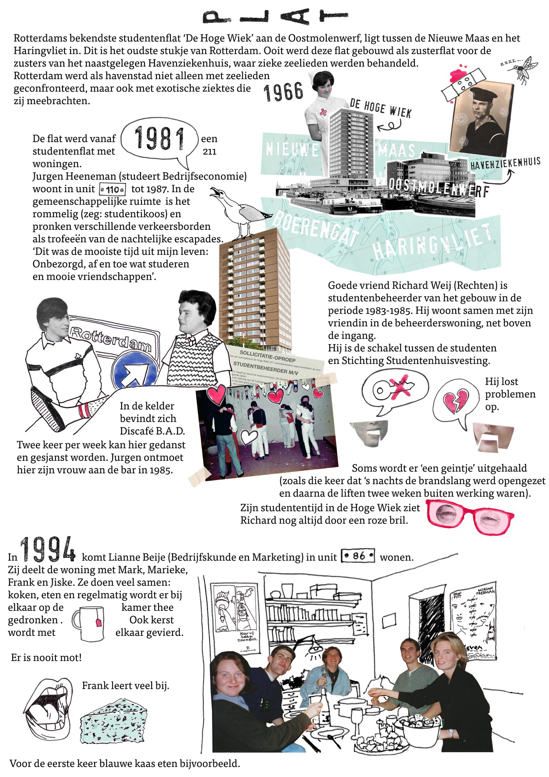 Vriendschappen,liefdes,uit de hand gelopen grappen en blauwe kaas: hieronder lees je meer over de geschiedenis, maar ook over de toekomst van De Hoge Wiek, de bekendste studentenflat van Rotterdam.