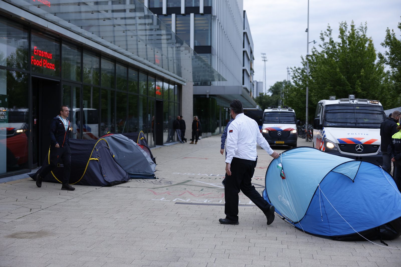De bezetting van het Erasmus Plaza is voorbij. De demonstranten hebben rond acht uur zondagavond de campus verlaten in een protestmars richting het Oostplein, nadat de ME had geëist dat ze vertrokken.