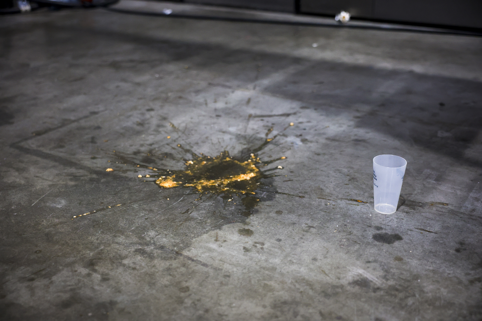 Mogelijk heeft de donateur van deze vloerpizza het adviesverhaal over Hoe overleef je de Eurekaweek niet gelezen. De gulle gever zal niet de enige geweest zijn die de maaginhoud ergens op een vloer achterliet er zijn er meerdere gespot. Bijvoorbeeld op de stoep en in de metro.