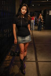 Honderden jongens in witte T-shirts schreeuwen mee met I will survive. Er wordt geduwd, maar weinig gedanst. Viviane Bui (18) kijkt bozig op haar telefoon terwijl ze op haar vriendin wacht bij de wc. Cowboylaarzen, kort rokje en subtiel glitterende make-up. Haar zwarte top valt van haar schouder en ontbloot een tatoeage: een cluster van sterren. In vergelijking met de eentonigheid van Annabel valt Viviane op door haar goed gecombineerde accessoires en ingetogen zelfverzekerdheid. Tijdens de Eurekaweek pakt ze helemaal uit met haar mode. Ze is hier sinds zondag, maar komt nu al kleren tekort. Haar ouders komen morgen nog een koffer brengen. “Je kan nooit te veel hebben.”