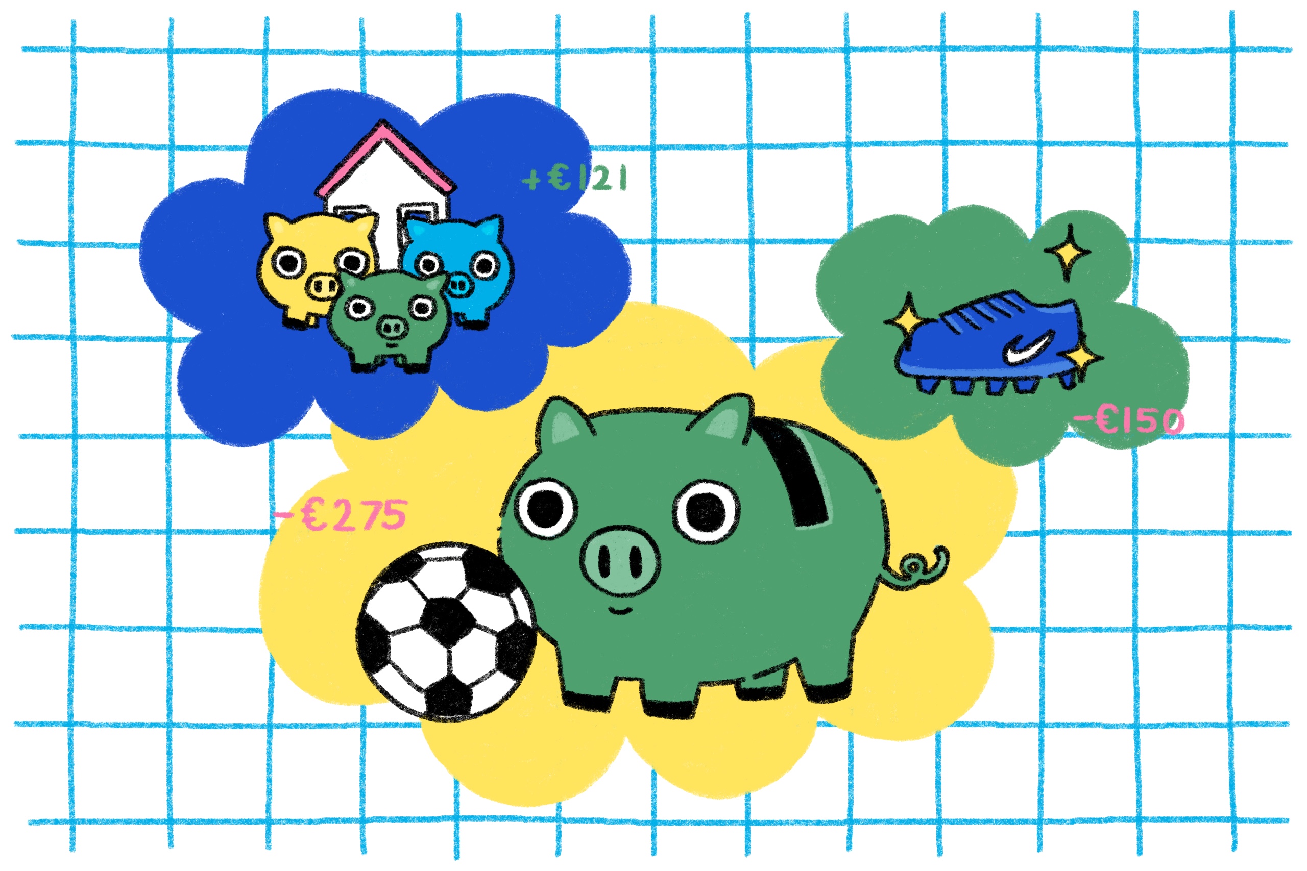 Omdat Max nog thuis woont, heeft hij nauwelijks vaste lasten en worden kosten zoals boodschappen voor hem betaald. Zijn geld geeft hij het liefst uit aan zijn grote passie, voetbal. “Afgelopen maand heb ik dure voetbalschoenen gekocht voor 130 euro en heb ik ook de contributie voor mijn club betaald. Daarnaast heb ik een abonnement op een app waarin ik mijn voetbalanalyses kan bijhouden. Verder geef ik bijna niets uit. Ik ga zelden uit eten of iets drinken buiten de deur. Afspreken met vrienden kost niets, en ik zie ze eigenlijk vooral online omdat de meesten in het buitenland studeren.”