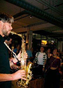 Al snel vormt zich een menigte rond de muzikant. Wat nog maar enkele minuten geleden een knusse koffiebar was, verandert in een clubachtige dansvloer. Franek, student International Bachelor Economics and Business Economics, vindt ‘het publiek minder agressief, want niemand springt tegen je aan’: “Ik ben gewend om ’s nachts uit te gaan, maar hiervan krijg ik geen hoofdpijn en voel ik me de hele dag energieker.” Zijn vriendin Iga uit Amsterdam denkt dat het nog socialer zou kunnen. “Ik heb het gevoel dat een speciale martini de sfeer wat losser kan maken.”