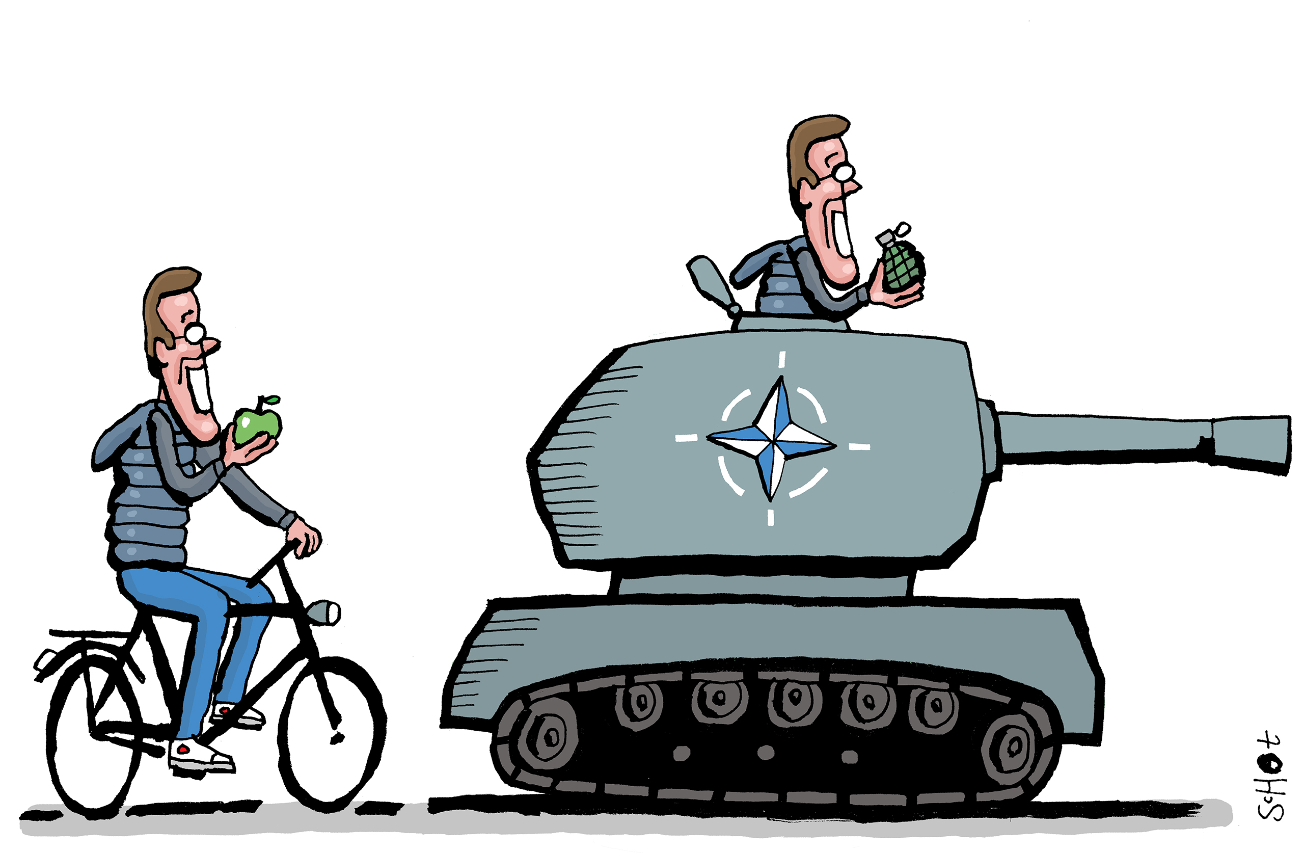 “Het is natuurlijk interessant dat juist Rutte degene is die ons moet klaarstomen voor de omschakeling naar een oorlogseconomie. Hij is altijd goed geweest om dingen te normaliseren die nooit genormaliseerd moeten worden. Maar ook die toenemende militarisering wordt nu verkocht als een spel van balansen. Als de grootmacht investeert in defensie moeten wij dat ook doen. Het is weer de logica van het huishoudboekje.”