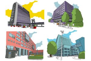 En eigenlijk moeten we Delft en Leiden ook noemen. Want de Erasmus Universiteit werkt veel samen met Leiden en Delft. LDE wordt dat genoemd – ja óók dat wordt afgekort. Je kan bij die universiteiten minoren doen, en wetenschappers doen samen onderzoek. De samenwerking met Delft is iets hechter, en die wordt dan weer ‘de Convergentie’ genoemd (of eigenlijk ‘Convergence’, in goed Nederlands). Met het Erasmus MC worden samen studies aangeboden, voor de helft hier en voor de helft daar. En aangezien iedereen vanzelfsprekend naar Rotterdam wil, wil Delft een campus in Rotterdam. Hoe dat gaat, is nog even afwachten. Ze zoeken daar nog enkele miljoenen voor.