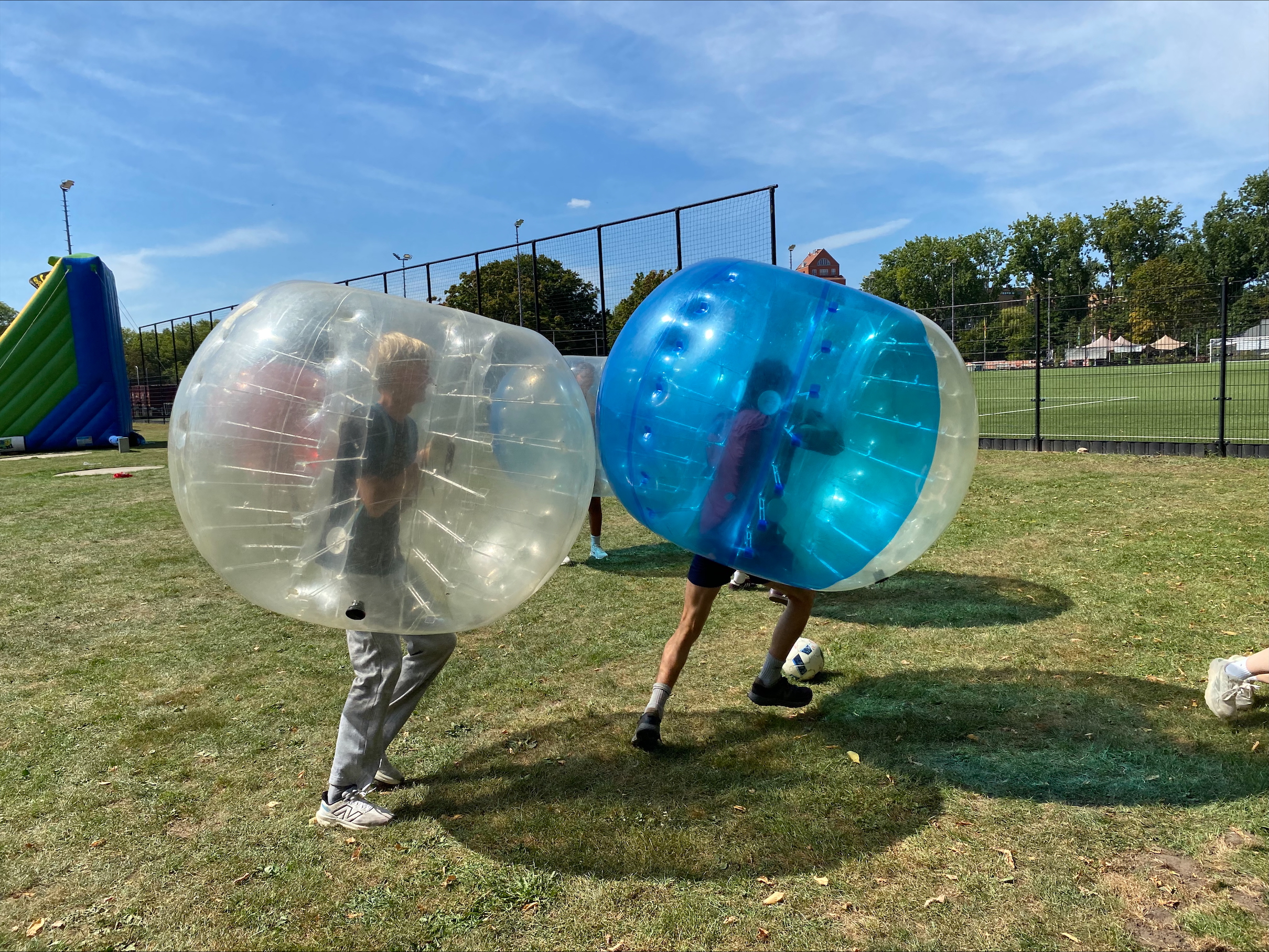 Tussen de springkussens en foodtrucks door komen twee wat slaperig ogende studenten aanlopen. De twee blijken voetbalfans te zijn van de rivaliserende clubs Arsenal en Manchester United. Etienne Hilton (20), student Economie, gaat voor zijn club uit Manchester de strijd aan met zijn vriend Viggo Wolff (20), student Psychologie, die voor de tegenhanger is. Ondanks dat het nogal laat werd gisteren rennen ze fanatiek het veld over.