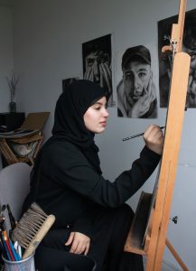 Bayan Alalo is een 25-jarige kunstenaar uit Syrië. Ze volgt Nederlandse en Engelse taalcursussen aan de Erasmus Universiteit. Tekenen doet ze al veel langer, maar sinds 2017 ligt haar focus op het maken van hyperrealisme.
