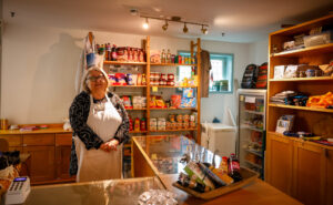 Le Pair, die al twintig jaar vrijwilliger is bij de kerk, staat achter de toonbank. In een kast achter haar worden diverse Noorse producten uitgestald. Wie langsloopt, wordt hartelijk ontvangen met een enthousiast verhaal over de geschiedenis van de Noorse kerk en de producten die ze er verkopen.