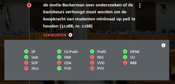 Hoe staat het met de portemonnee van studenten? Moet de basisbeurs misschien omhoog? Laten we dat onderzoeken, stond in een motie. Opnieuw zijn er partijen die hier niets van willen weten, terwijl andere er geen kwaad in zien.