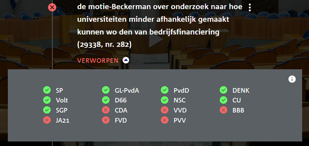 Kleur bekennen: hoe stemden de partijen over hoger onderwijs?