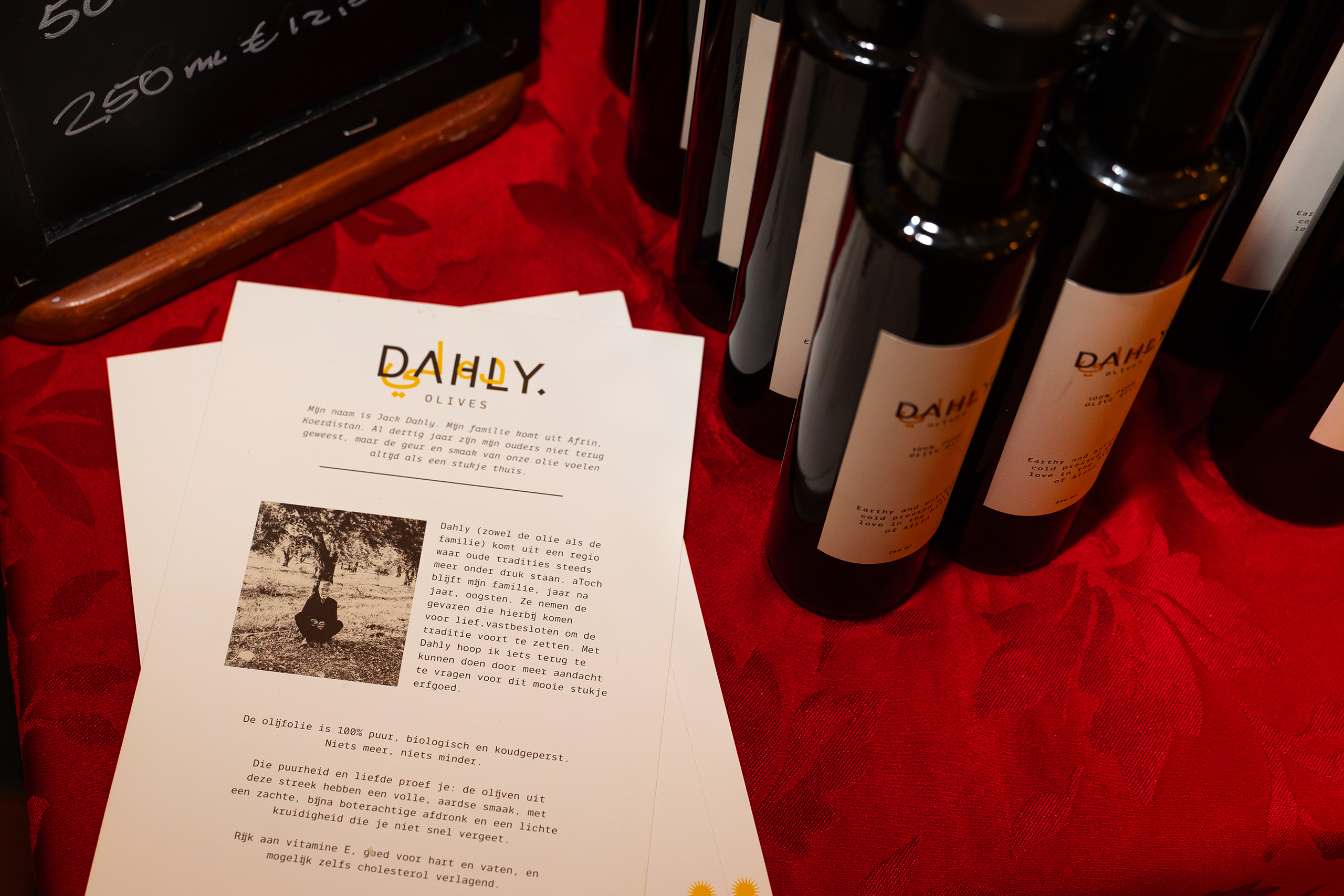 Afgelopen mei lanceert hij zijn olijfolie tijdens het Koerdisch Film Festival in Amsterdam. “Dat was de perfecte plek. Koerden zijn kenners op dit gebied: olijfolie is ons vloeibare goud. Zo kon ik meteen zien of mijn olijfolie echt lekker is.” De lancering is een succes, Jack verkocht alle honderd flessen die hij meenam.