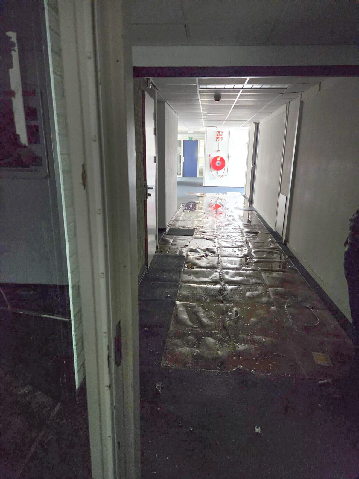 Het G-gebouw is momenteel dicht omdat de stroom is afgesloten, staat op briefjes bij de ingangen. De diefstal van kranen en boilers uit het naastgelegen F-gebouw heeft afgelopen weekend grote waterlast veroorzaakt. Daarom werd de stroom in de gekoppelde gebouwen uitgeschakeld.