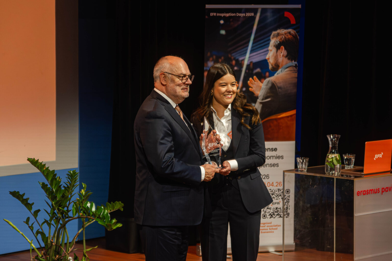 De uitreiking vond plaats tijdens de EFR Inspiration Days. Voor Karis was het een drukke dag. Eerder die ochtend sprak hij met de koning in Paleis Huis ten Bosch en bezocht hij minister-president Rob Jetten in Den Haag. In Rotterdam trof hij zo’n honderdvijftig studenten en alumni–Woudestein is bekend terrein voor de president van Estland: hij was er eerder zelf onderzoeker.