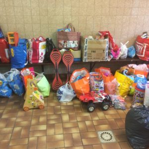 Esther Vermaat, chairwoman of soccer club Antibarbari woke up early this morning because of a ringing telephone. “Jon de Ruijter, director of Erasmus Sports asked if we would open our doors today so people could drop off toys for the refugees. Naturally, we agreed.” Jeroen Wessel, one of the members of Antibarbarius was one of the first people who handed over a few bags filled with toys. “As soon as I heard about the fundraising I drove to my parents to select al the unused toys. All of us have items in our house that we don’t use anymore. Why not share these things with people that don’t have anything?
